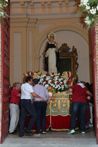Finalizado el recorrido, la talla de la Virgen ha regresado a la Ermita de Nuestra Señora de los Santos sobre su carroza, tras devolver el bastón de mando al regidor. La música de la Banda Municipal Juvenil ha tocado para la Virgen en el momento de cruzar al interior del templo.