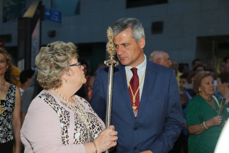 Imagen en alta resolución. Este enlace se abrirá mediante lightbox, puede haber un cambio de contextoLas hermandades, peñas y casas regionales de la ciudad han precedido a Nuestra Señora de los Santos y a San Simón de Rojas en el recorrido de esta tradicional procesión, que ha estado encabezada por el Alcalde de Móstoles, David Lucas, quien ha hecho entrega del bastón de mando a la Virgen.