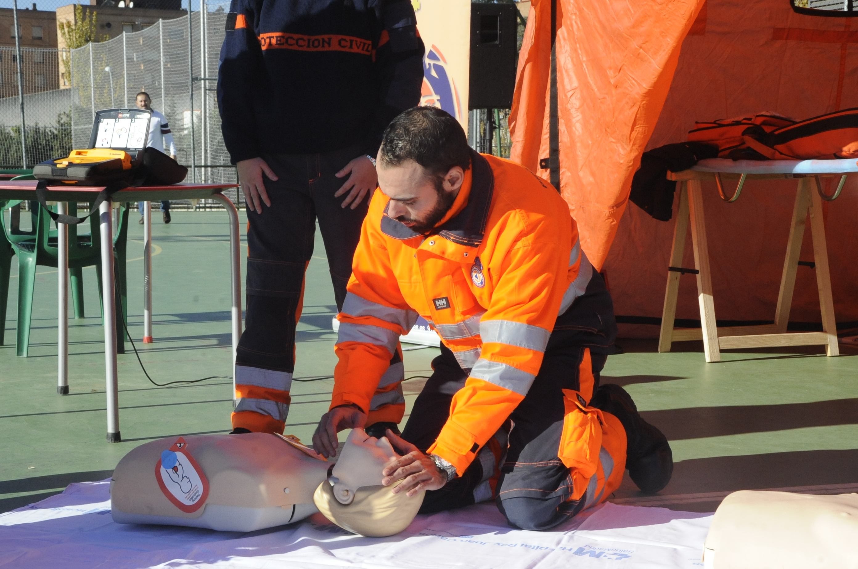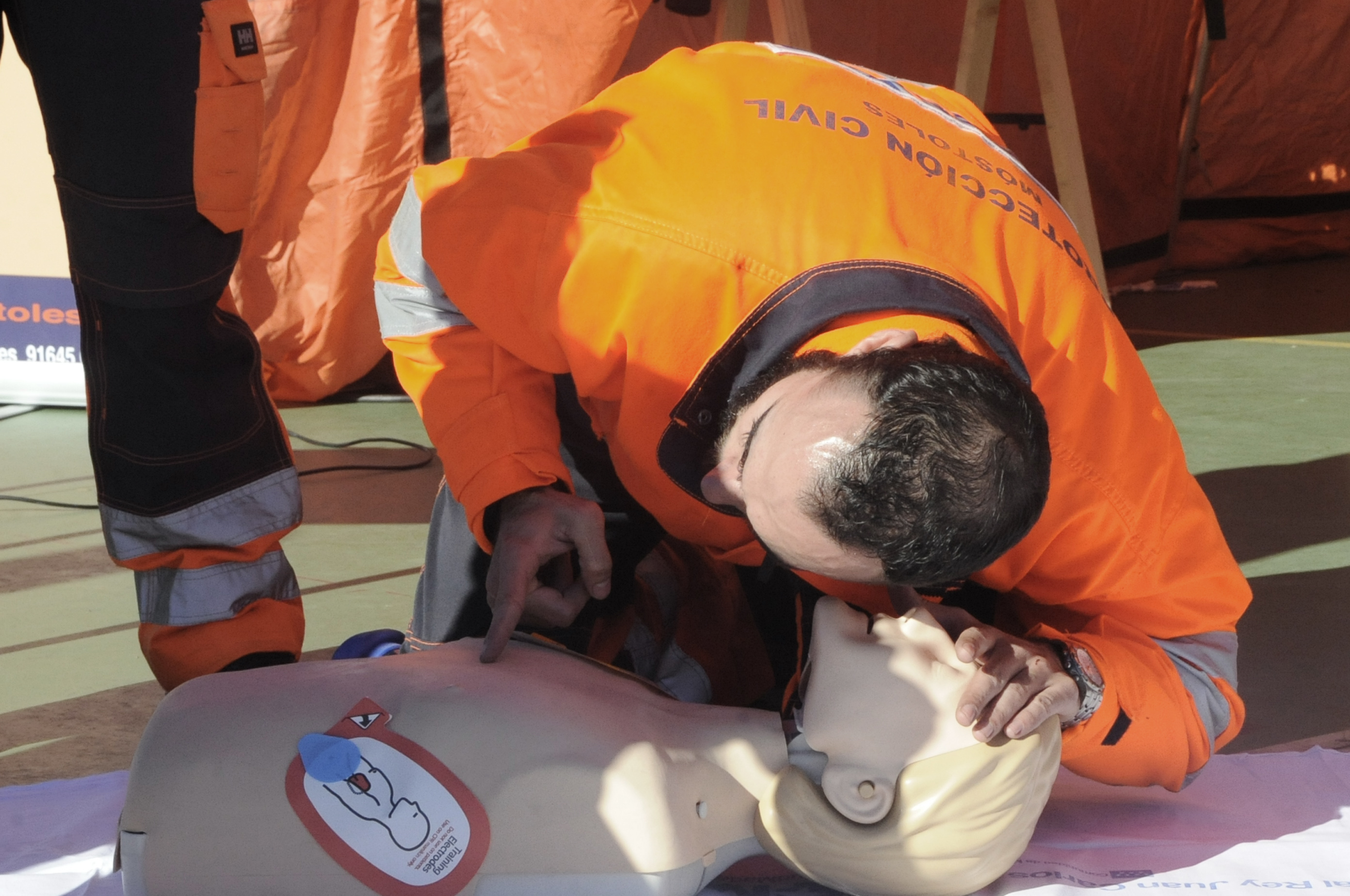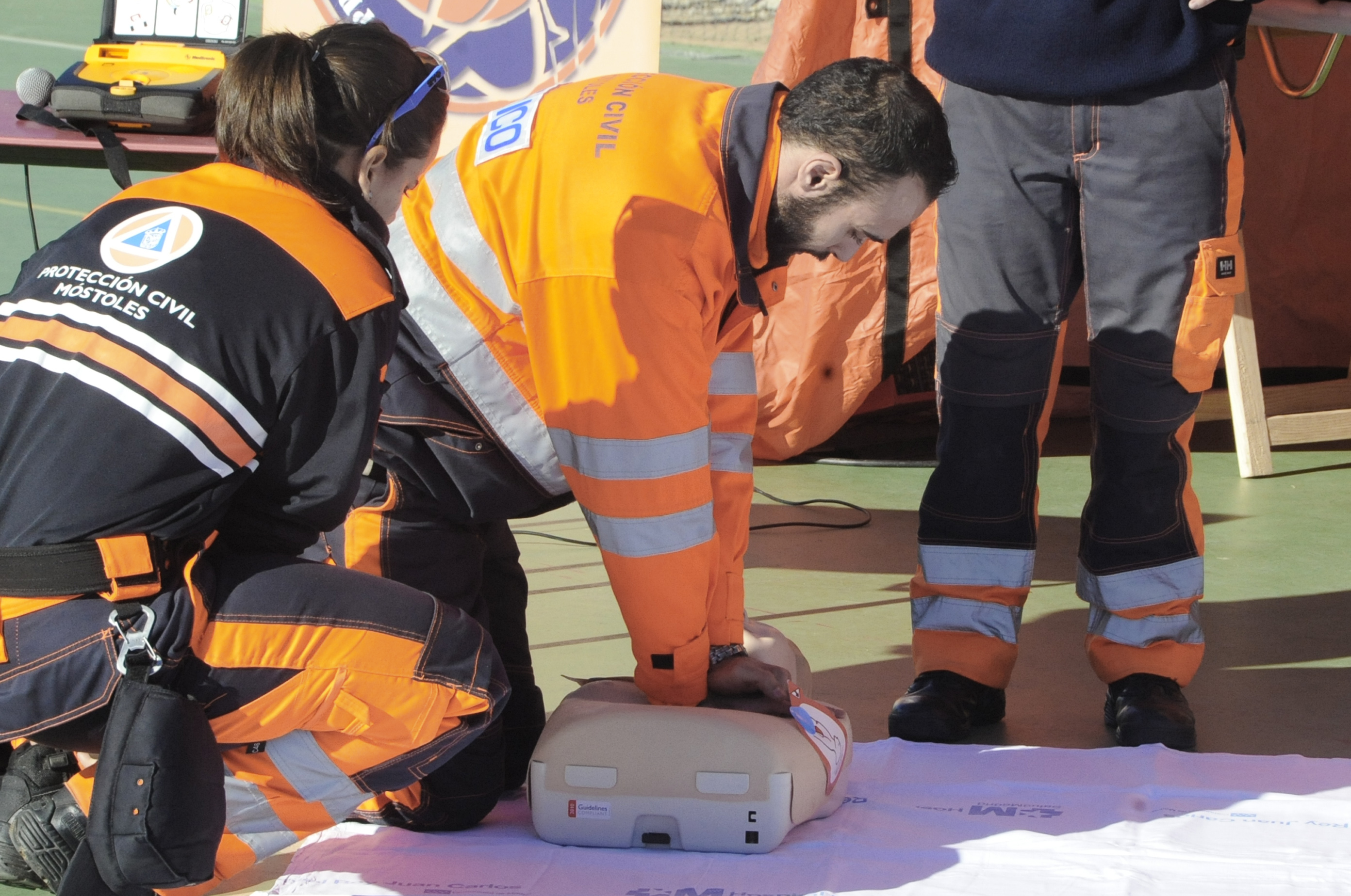 Dentro de las actividades didácticas que lleva a cabo la Agrupación de Protección Civil de Móstoles, con el objeto de que los vecinos puedan conocer de primera mano la labor que desarrolla, ayer domingo realizó una demostración de atención en primeros auxilios en las instalaciones del Club Deportivo Estoril II, donde asistió el Concejal de Deportes, Agustín Martín Cortés.