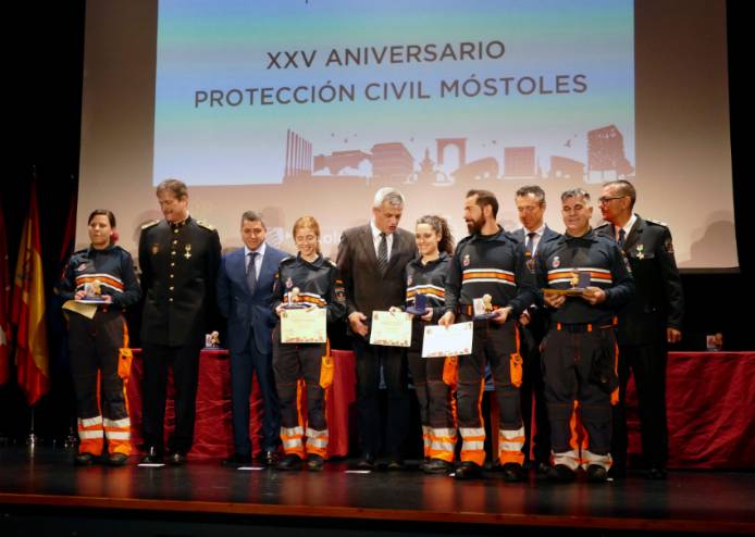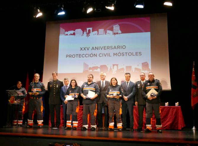 • Además, la Agrupación de Protección Civil de Móstoles ha recibido una placa que la acredita, por parte del Ministerio del Interior, la trayectoria y cumplimiento de los servicios durante 25 años.