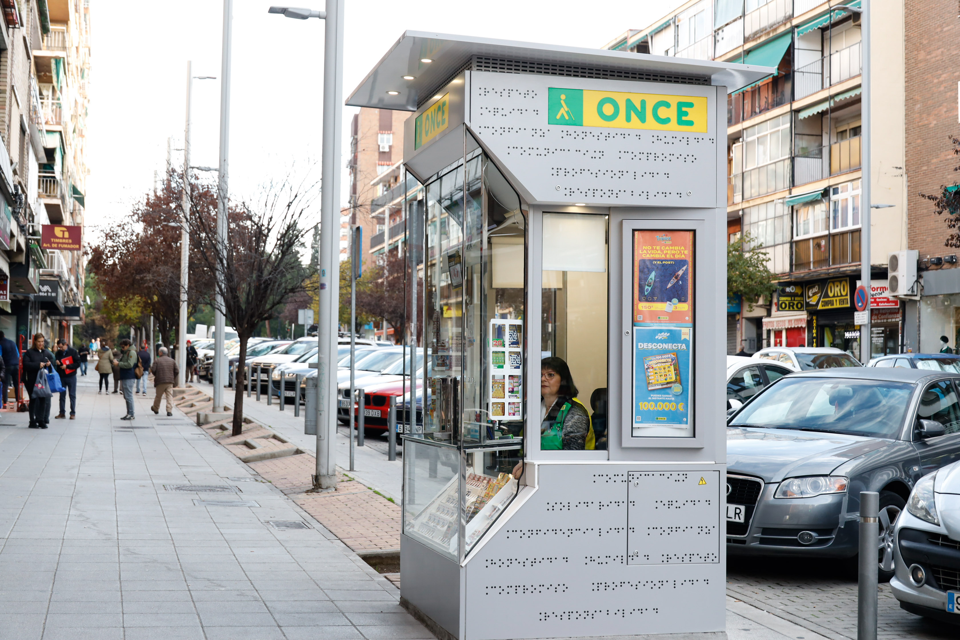 La Organización Nacional de Ciegos Españoles está modernizando todos sus quioscos de venta de productos de juego para que, gracias a su campo de visión 270º, no haya barreras visuales entre vendedor y el espacio de su alrededor y así facilitar su visibilidad y atraer la atención de las vecinas y vecinos.