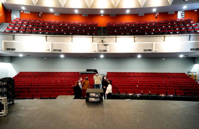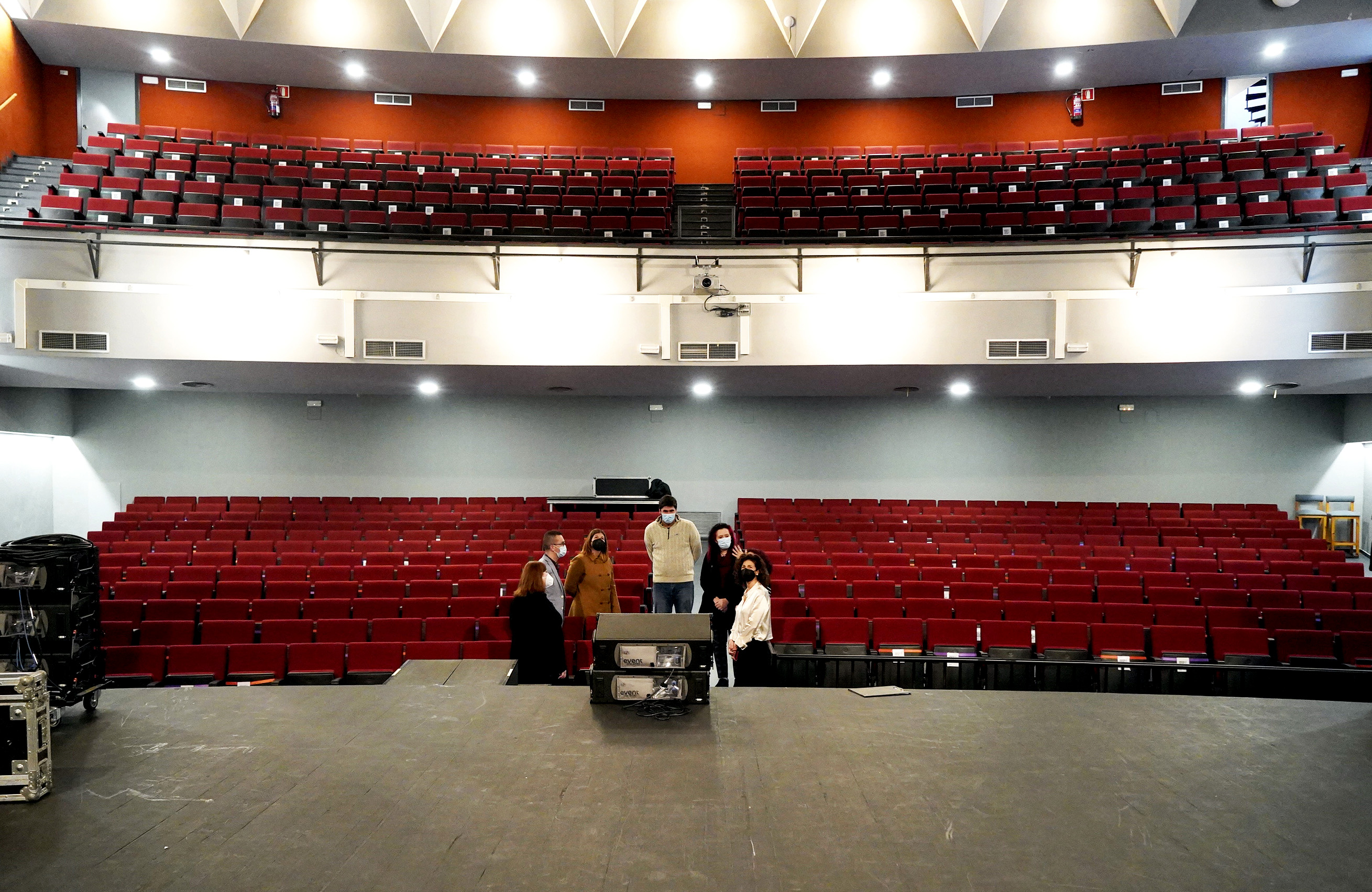 La Alcaldesa, Noelia Posse, acompañada por el Concejal de Seguridad, Convivencia, Cultura y Transición Ecológica, Álex Martín, el Concejal de Mejora y Mantenimiento de los Espacios Públicos, David Muñoz, y la portavoz de Podemos, Mónica Monterreal, ha visitado el teatro del Centro Cultural Villa de Móstoles esta mañana para comprobar el resultado de los trabajos realizados.