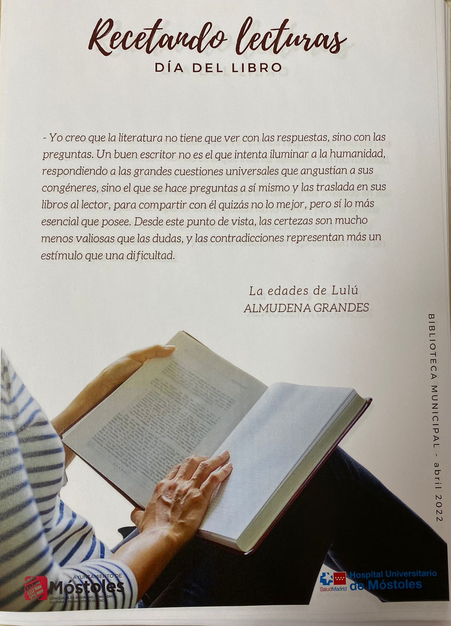 “Recetando lecturas”, prescripciones médicas de lecturas en Móstoles para conmemorar el Día del Libro