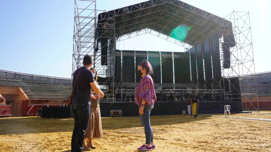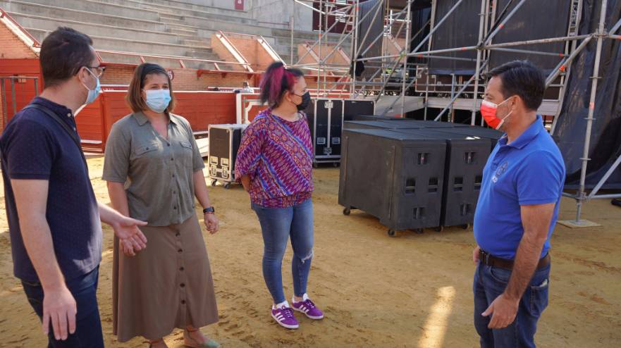 • La Alcaldesa de Móstoles, Noelia Posse, ha visitado el recinto ferial y la Plaza de Toros, para comprobar que los trabajos de instalación se realizan correctamente.
