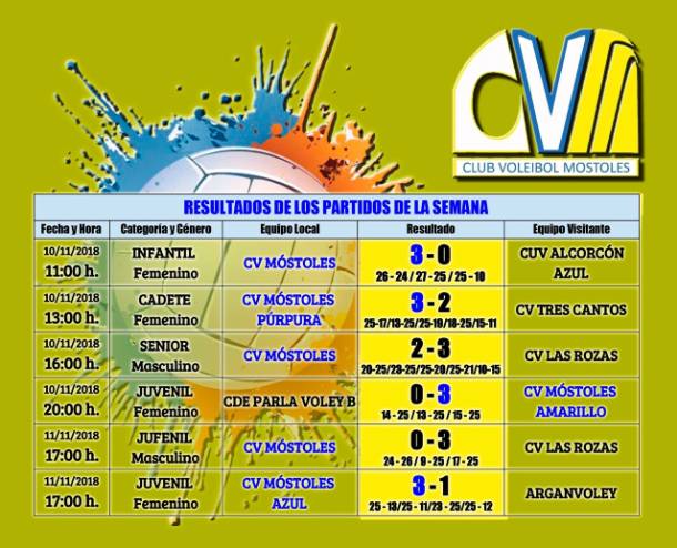 Imagen en alta resolución. Este enlace se abrirá mediante lightbox, puede haber un cambio de contextoResultados de este fin de semana del Club Voleibol Móstoles