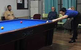 El Sábado 10 de marzo numerosos espectadores asistieron a una estupenda tarde de billar, donde todos los jugadores de nuestro club ganaron con solvencia, apretando especialmente en la segunda parte de sus partidos. Iniciaron la tarde Alfonso Legazpi ganando a José Expósito (40 a 25 en 32) y Adrián Legazpi ganando a una muy meritoria Estela Cardoso (40 a 31 en 32). Completaron la victoria en la segunda ronda José Mª Mas ganando a Jorge Sánchez (40 a 22 en 20) y nuestro reciente número 1 del ranking nacional, Rubén Legazpi, ganando a Valentín Andaluz Blázquez (40 a 10 en 22).