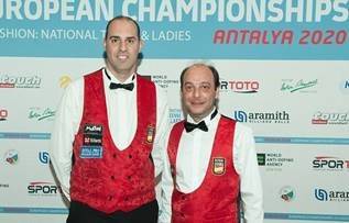 Imagen en alta resolución. Este enlace se abrirá mediante lightbox, puede haber un cambio de contextoEl jugador abanderado del Club Billar Móstoles, Rubén Legazpi, gana de forma brillante, haciendo pareja con el campeonísimo español, Daniel Sánchez, el campeonato de Europa de Selecciones nacionales de Billar a 3 bandas.