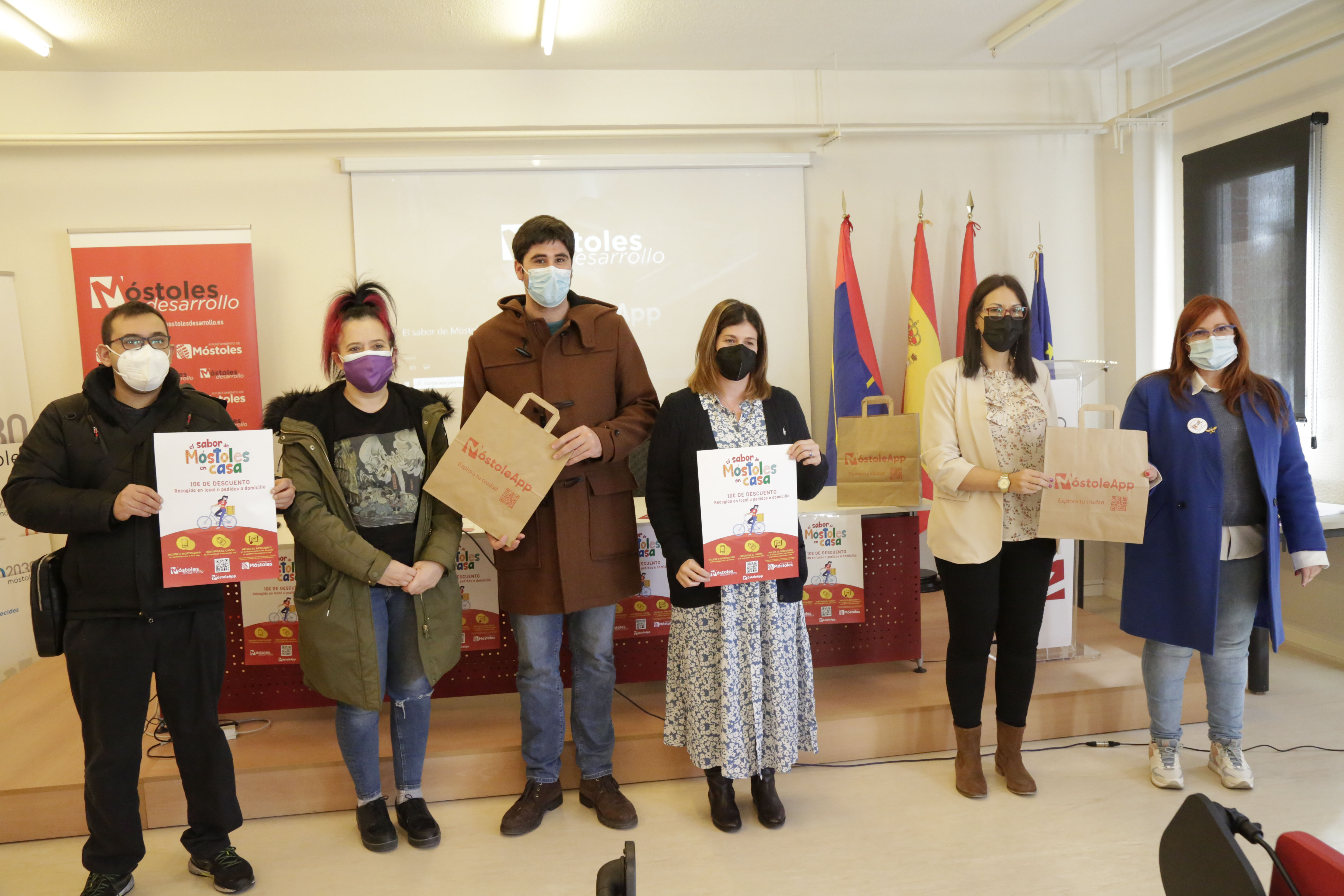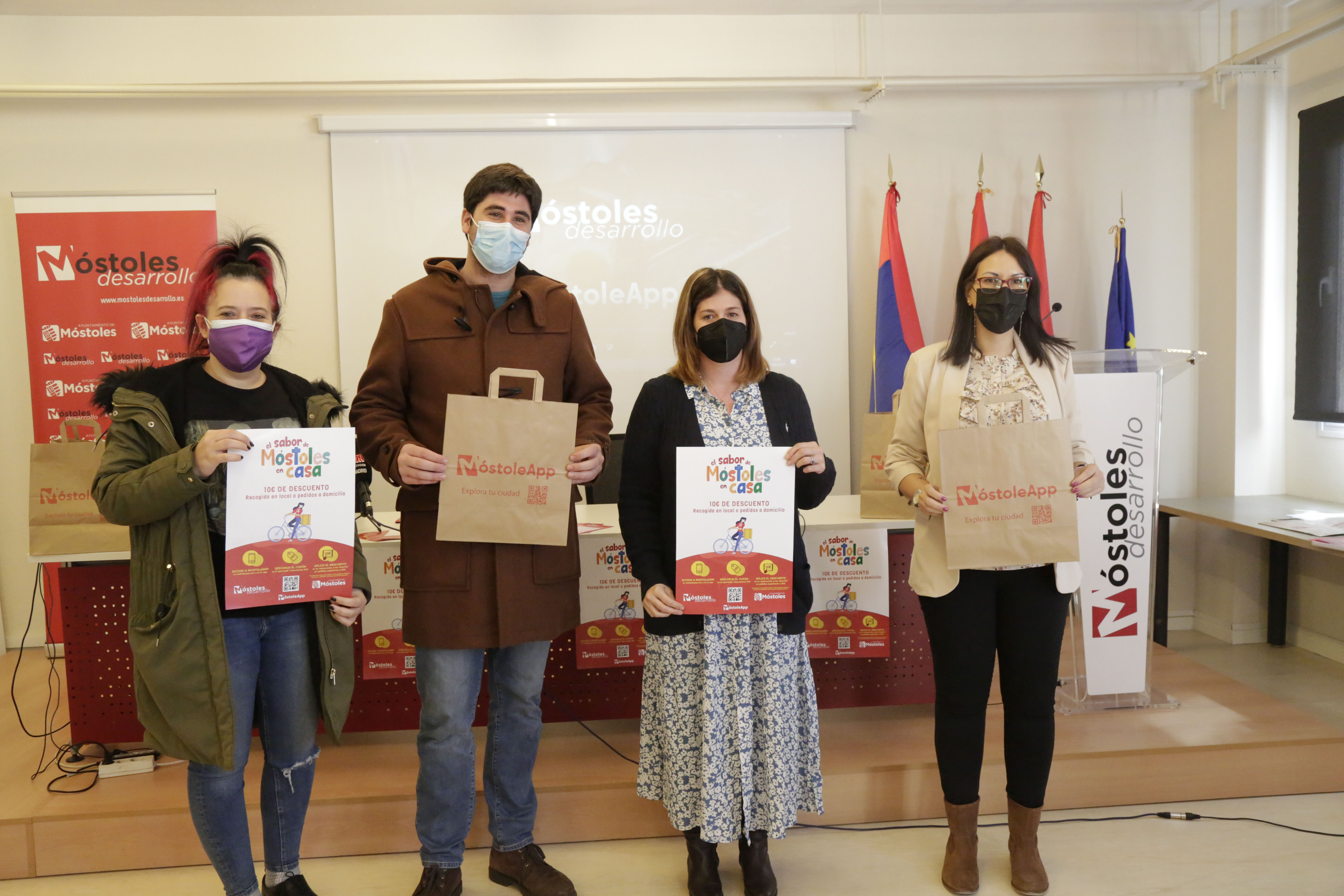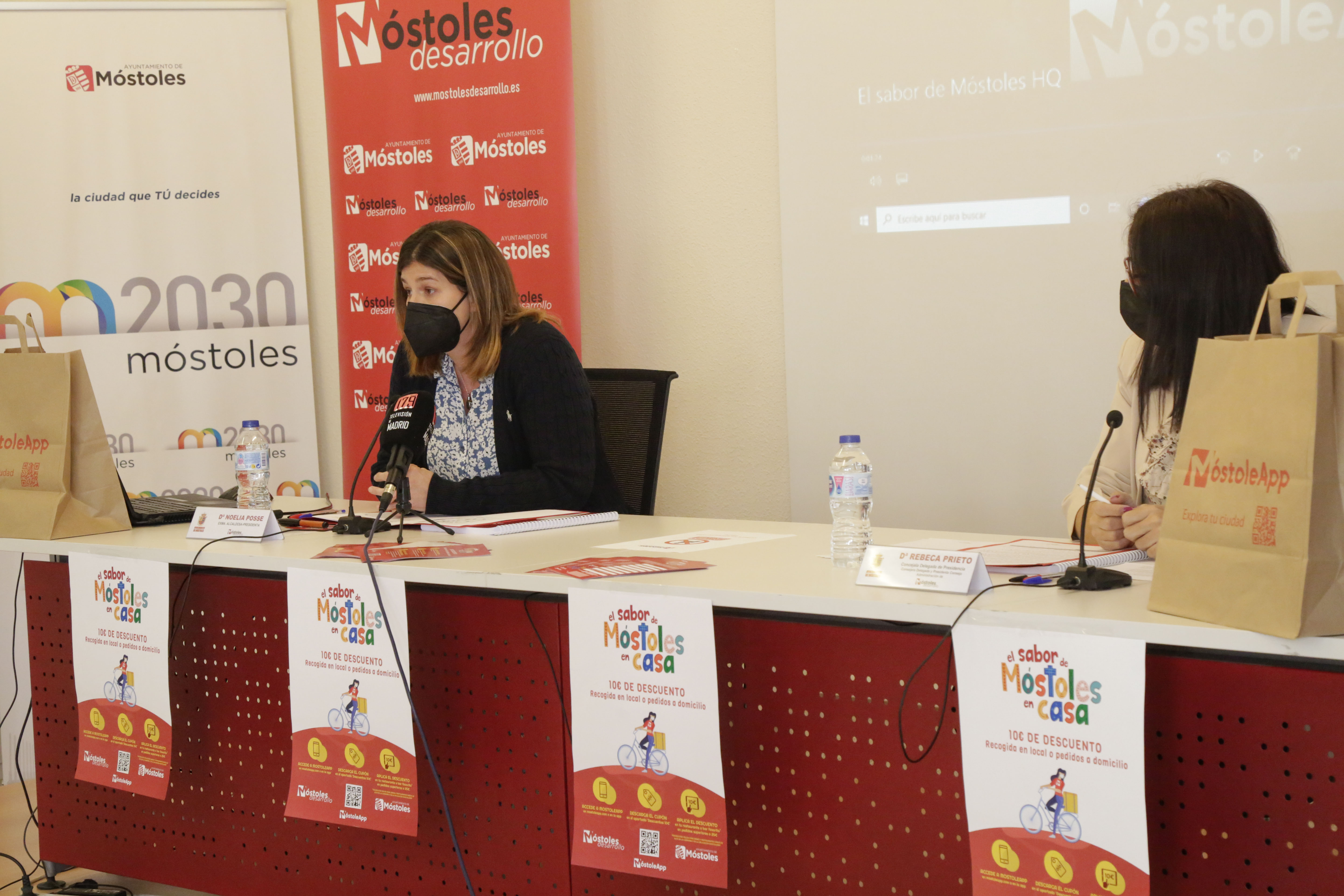 Imagen en alta resolución. Este enlace se abrirá mediante lightbox, puede haber un cambio de contexto"El sabor de Móstoles en casa" es la nueva campaña que el Gobierno de Móstoles, formado por PSOE y Podemos, pone en marcha para apoyar e incentivar el consumo en la hostelería del municipio facilitando el reparto de comida a domicilio. La medida, que hoy ha presentado la Alcaldesa, Noelia Posse, y la Concejala de Presidencia y responsable del área de empleo, Rebeca Prieto, se enmarca dentro del plan de ayudas para paliar las graves consecuencias de la pandemia de COVID-19 en el comercio local y la hostelería.