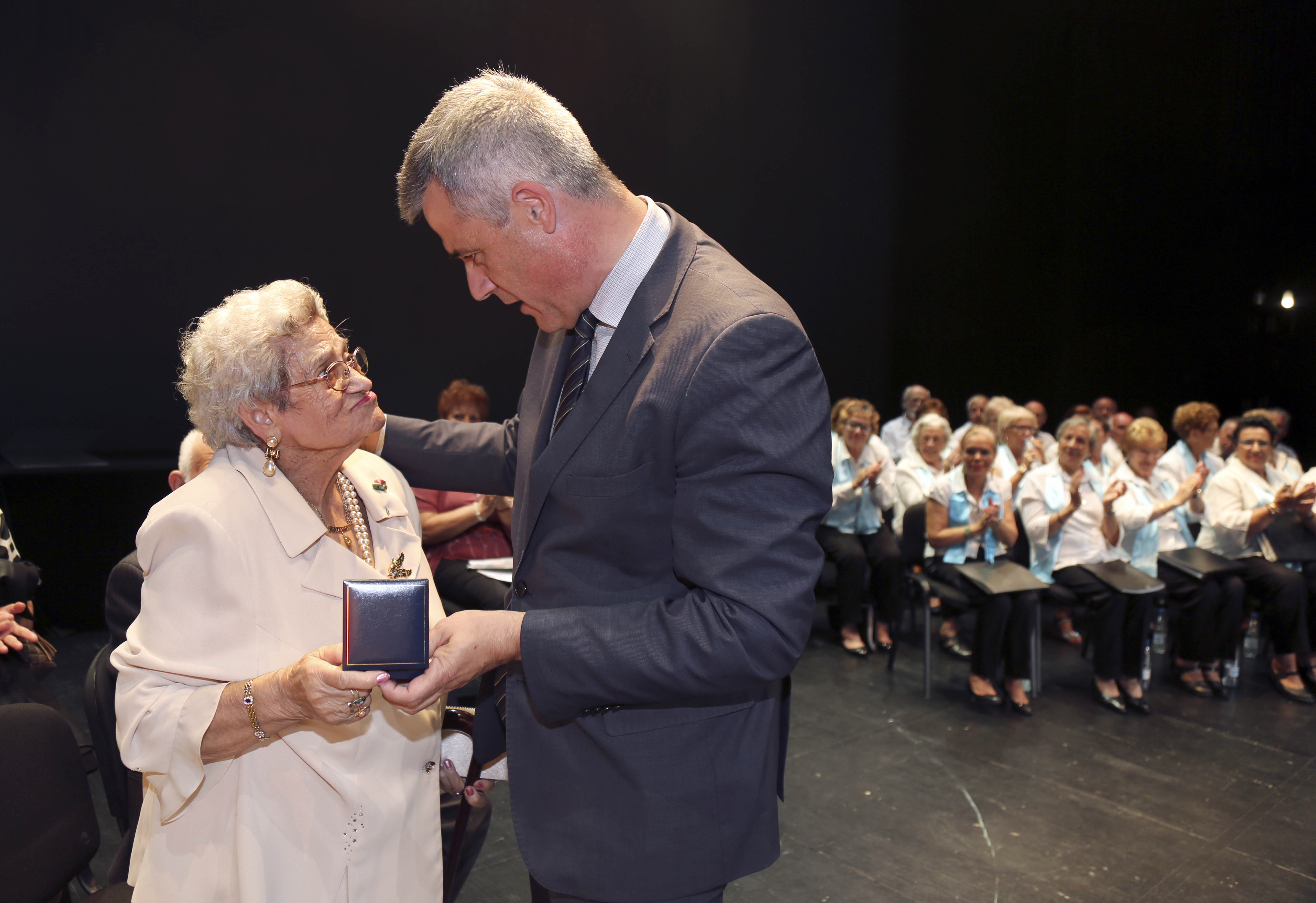 Los socios del Centro Juan XXIII, Natividad Díaz Cuesta, de 95 años, Restituto Alonso de 94 años y Clemente Delgado de 99 años, así como el Taller Literario Juan XXIII y el Coro de Mayores Juan XXIII, recibieron obsequios de reconocimiento de manos del Alcalde de Móstoles, David Lucas, de la Concejala de Bienestar Social, Sanidad e Igualdad, Ana Mª Rodrigo, y de la Presidenta de la Junta directiva de los Centros de Mayores, Josefina Uría.