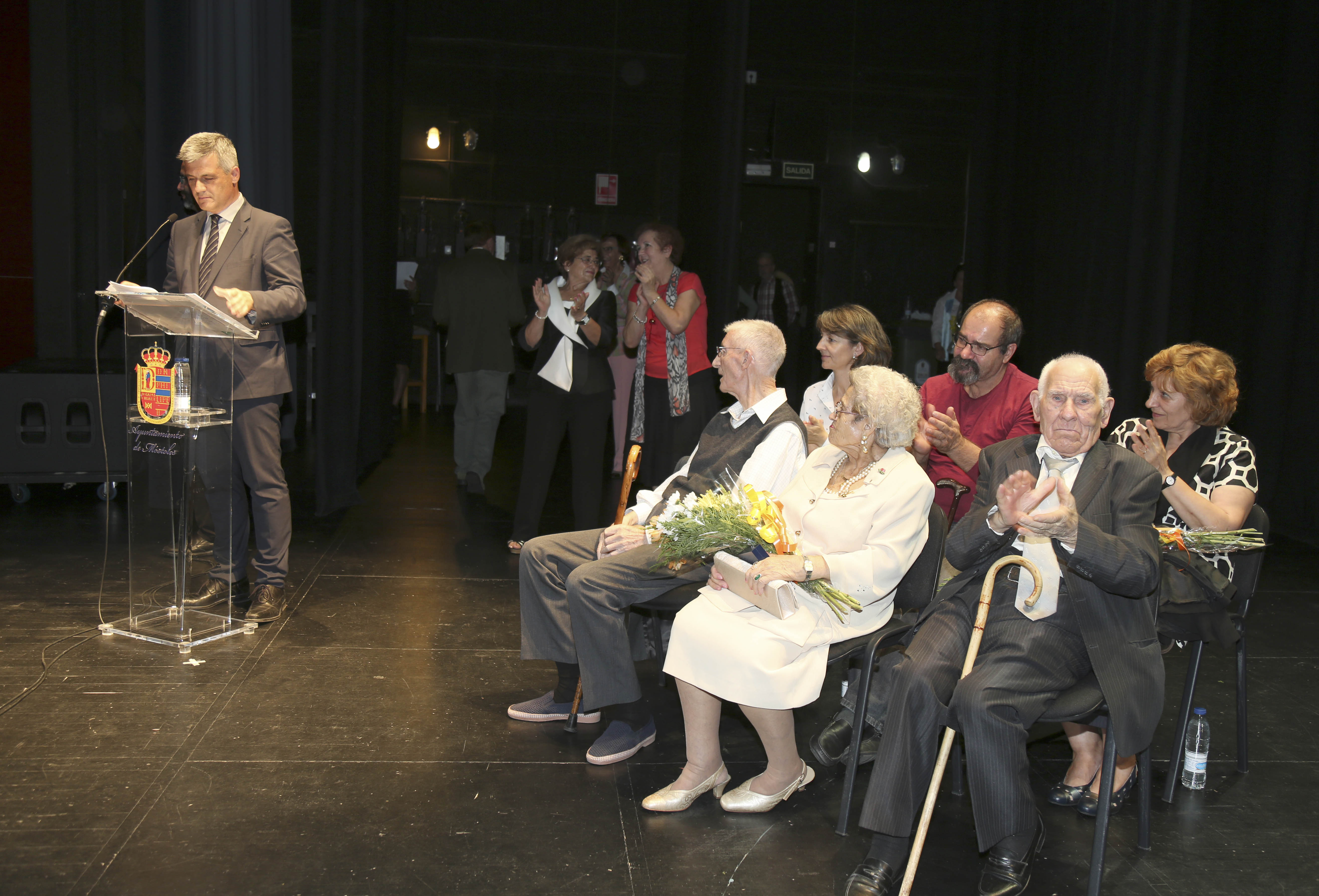 Con motivo de la celebración del Día Internacional del Mayor, el Ayuntamiento homenajeó ayer a los mayores del municipio en un acto celebrado en el Teatro del Bosque. El Alcalde de Móstoles, David Lucas, acompañado por la Concejala de Bienestar Social, Sanidad e Igualdad, Ana Mª Rodrigo y la Presidenta de la Junta directiva de los Centros de Mayores, Josefina Uría, hicieron entrega de una medalla conmemorativa a los socios del Centro Juan XXIII, Natividad Díaz Cuesta, de 95 años, Restituto Alonso de 94 años y Clemente Delgado de 99 años.