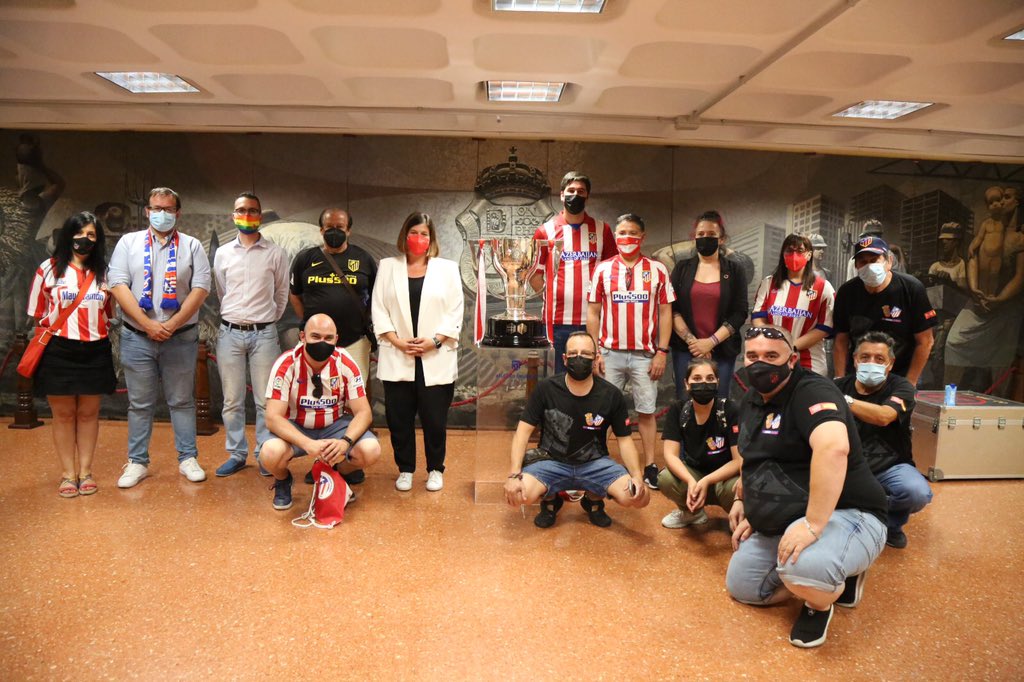 Seguidamente, la Copa ha sido trasladada hasta la plaza del Pradillo, donde cumpliendo con todas las medidas establecidas para contener la expansión de la COVID-19, seguidores del equipo rojiblanco han podido verla de cerca y hacerse una foto con el undécimo trofeo conquistado por el Atlético de Madrid en la temporada 2020-2021.