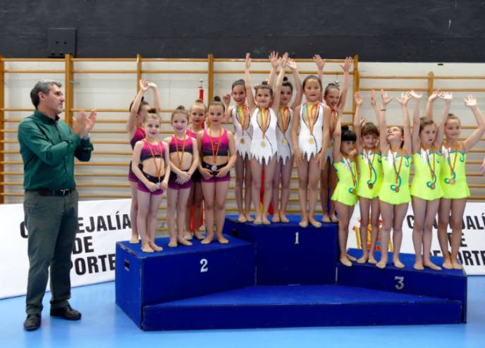 Imagen en alta resolución. Este enlace se abrirá mediante lightbox, puede haber un cambio de contextoLa Concejalía de Deportes del Ayuntamiento de Móstoles ha organizado este fin de semana en el centro deportivo Rafa Martinez, la segunda jornada de Deporte Infantil de Gimnasia Rítmica, una nueva cita, dedicada a la gimnasia rítmica de conjunto en la que compitieron prebenjamines, benjamines, alevines e infantiles. Gimnastas de diferentes entidades, dados de alta en el área de Deporte Escolar Infantil y que no hayan participado en ningún campeonato del programa del Deporte Escolar Municipal de Conjuntos, en ninguna de sus fases locales, zonales ni finales y que no hayan tomado parte en ninguna competición organizada por la F.M.G. (ni individual, ni conjunto). El concejal de Deportes, Agustín Martín, entregó los premios a las ganadoras.