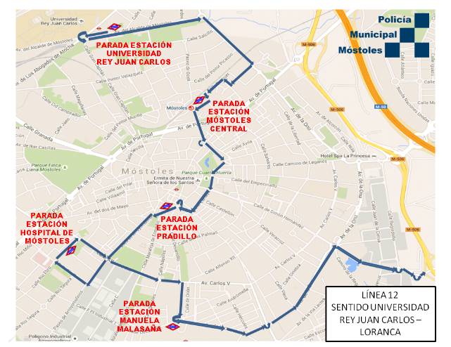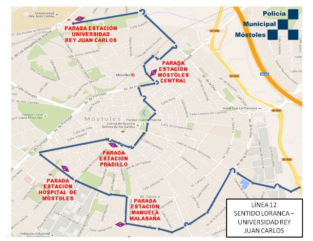Los autobuses de esta nueva línea, L-12 harán uso de las paradas establecidas al efecto en ambos sentidos, que serán las más cercanas a las diferentes estaciones de metro y que son: