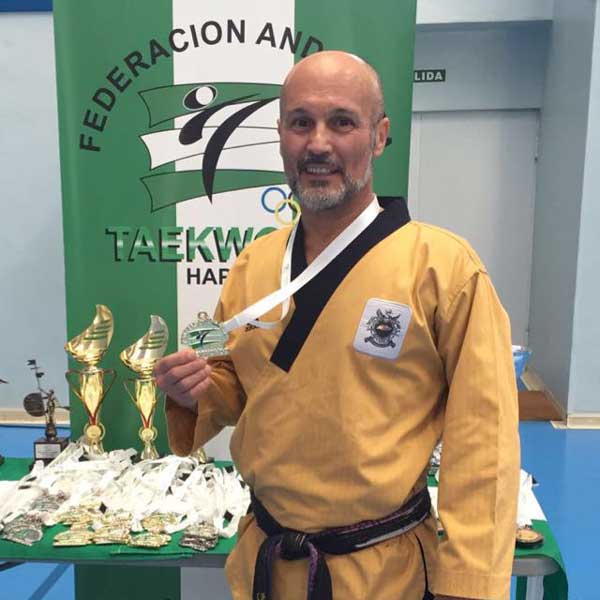 Imagen en alta resolución. Este enlace se abrirá mediante lightbox, puede haber un cambio de contexto El pabellón Los Bermejales de la Universidad de Sevilla acogió el sábado 21 de mayo el segundo evento puntuable para formar parte de la selección española de taekwondo con vistas al próximo Campeonato Mundial de Perú. En el torneo compitieron representantes de las comunidades de Andalucía, como organizadora, Cataluña, Galicia, Valencia, Castilla la Mancha, Baleares, Castilla y León, Navarra, Madrid y Murcia. El maestro y alumnos del gimnasio Lee de Móstoles acudieron formando parte de la selección madrileña de taekwondo, obteniendo unos excelentes resultados, con lo que se mantienen en la lucha y en varios casos lideran la clasificación para acceder al Mundial.