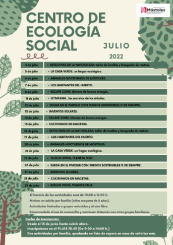 Aprovechar el verano para realizar actividades en familia que nos permitan conectar con el medioambiente y la sostenibilidad, es el objetivo de las actividades programadas por el Centro de Ecología Social de la Concejalía de Seguridad, Convivencia, Cultura y Transición Ecológica para este mes de julio.