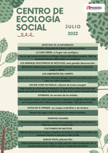 Los talleres programados abordan diferentes temáticas como identificar y distinguir los animales del medioambiente urbano de la ciudad, conocer los tóxicos con los que convivimos en el hogar y buscar alternativas más ecológicas y sostenibles, experimentar con inventos caseros que funcionen con energía solar, aprender a cultivar, gymkanas relacionadas con los árboles, zonas de escape para llenarse de energía…