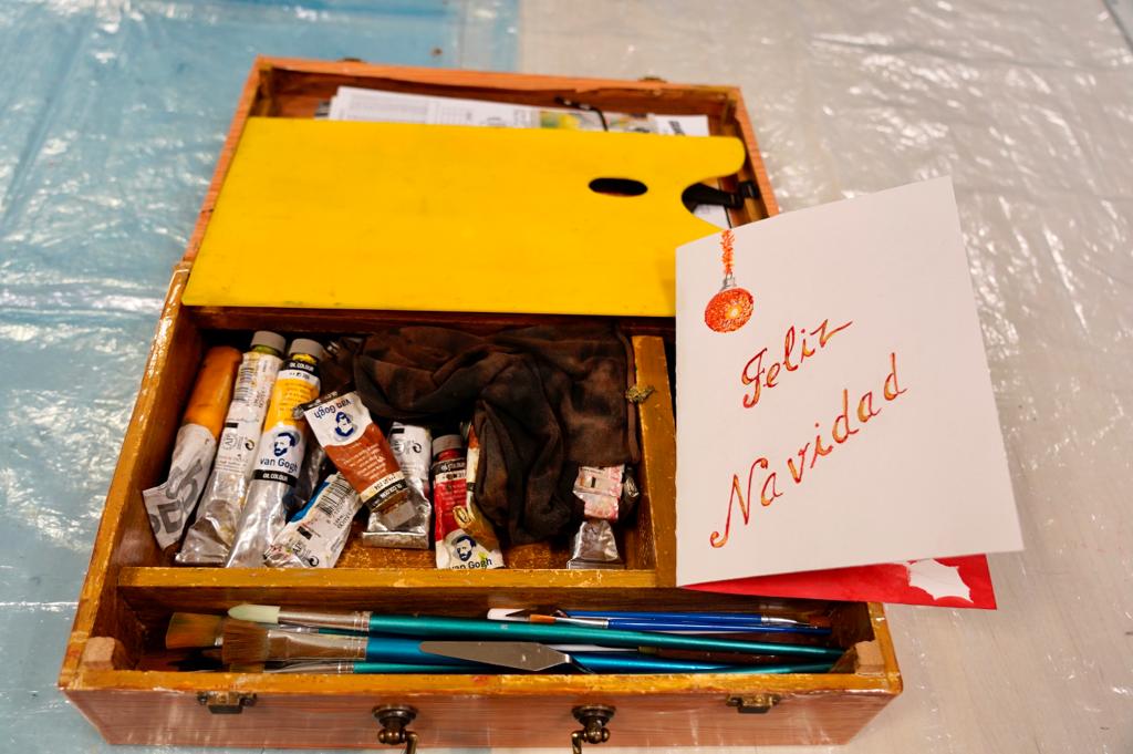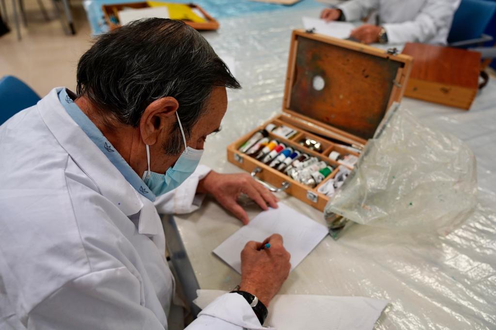 Las alumnas y alumnos tienen la oportunidad de diseñar su propia postal pintada a óleo con la orientación de los monitores que les enseñan diferentes técnicas de pintura. En total participan en este taller, que se desarrollará hasta el día 16 de diciembre, una docena de mayores.