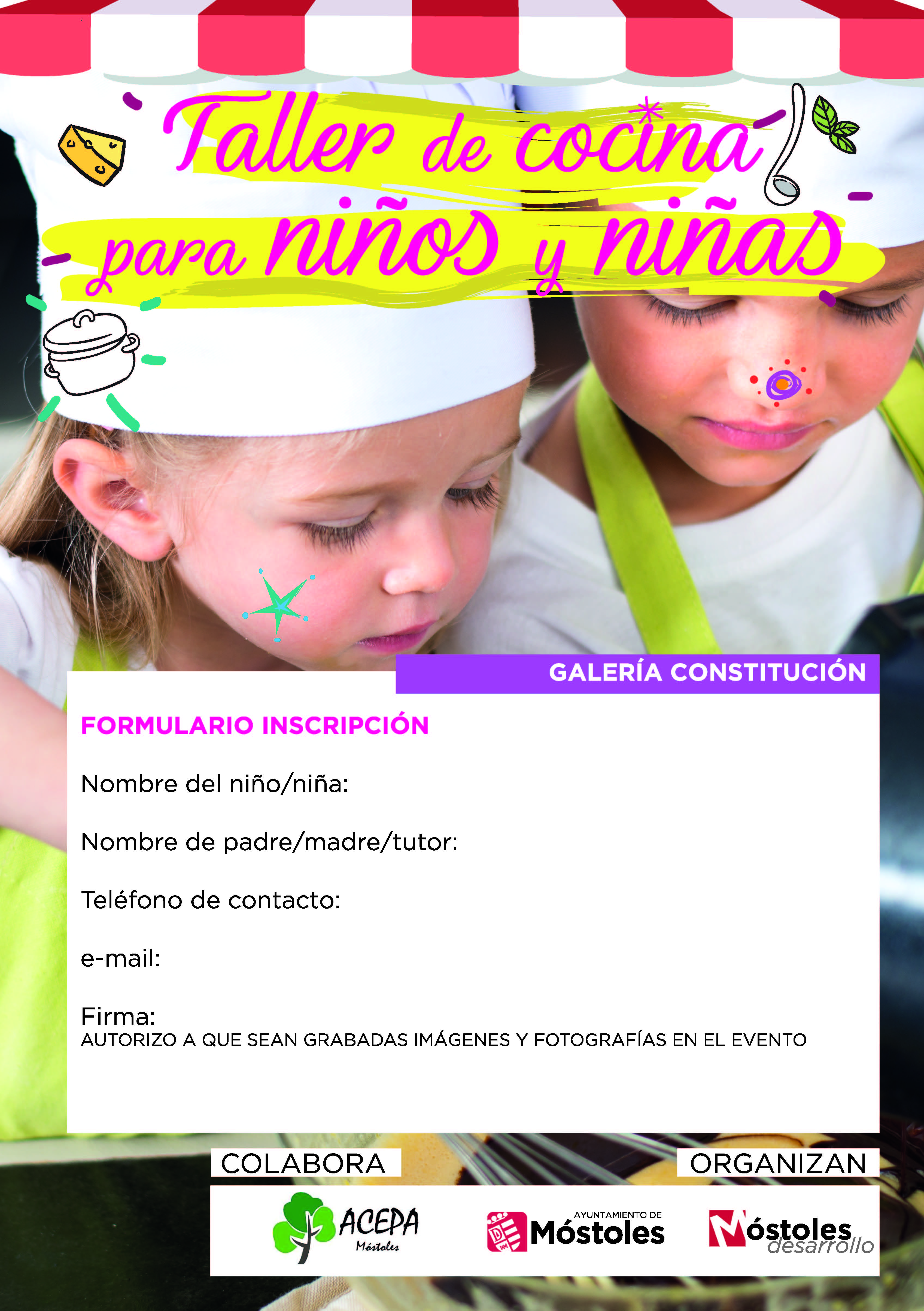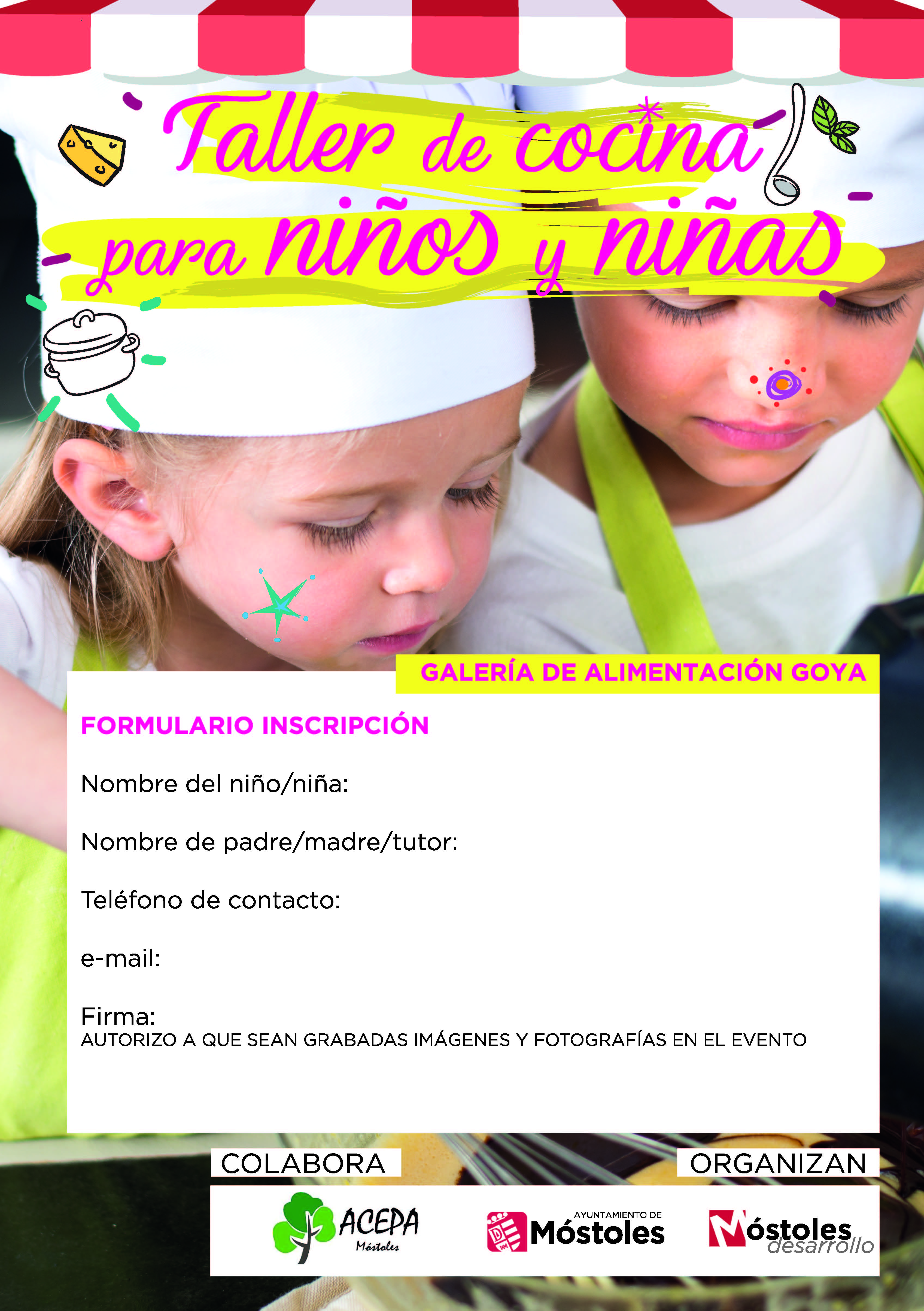 cartel taller infantil A3Imagen en alta resolución. Este enlace se abrirá mediante lightbox, puede haber un cambio de contextocartel taller infantil A3El Ayuntamiento de Móstoles, a través de la Empresa Municipal Móstoles Desarrollo, y la Asociación de Comerciantes ACEPA ponen en marcha Talleres de Cocina Saludable en frío que tendrá como protagonistas a niños y niñas de la localidad. Esta iniciativa es una primera fase, dentro del Plan de dinamización de Mercados y Galerías de Alimentación del Plan de Empleo para la Ciudad de Móstoles 2016-2019 .