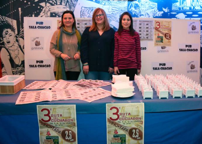 Imagen en alta resolución. Este enlace se abrirá mediante lightbox, puede haber un cambio de contextoLa concejala de Desarrollo Económico, Empleo y Nuevas Tecnologías, Jessica Antolín, la concejala de Régimen Interior, Susana García, y la presidenta de la Federación de Comerciantes de Móstoles, Chelo García, asistieron el pasado viernes, en el Pub Chacao, a la presentación de la Ruta del Cucharón. Se trata de la tercera edición de esta iniciativa gastronómica que se celebrará del 9 al12 de marzo, organizada por la Federación de Comerciantes de Móstoles en colaboración con el Ayuntamiento yotras entidades. Su objetivo fundamental es promocionar a las empresas de hostelería participantes y dinamizar su actividad comercial.