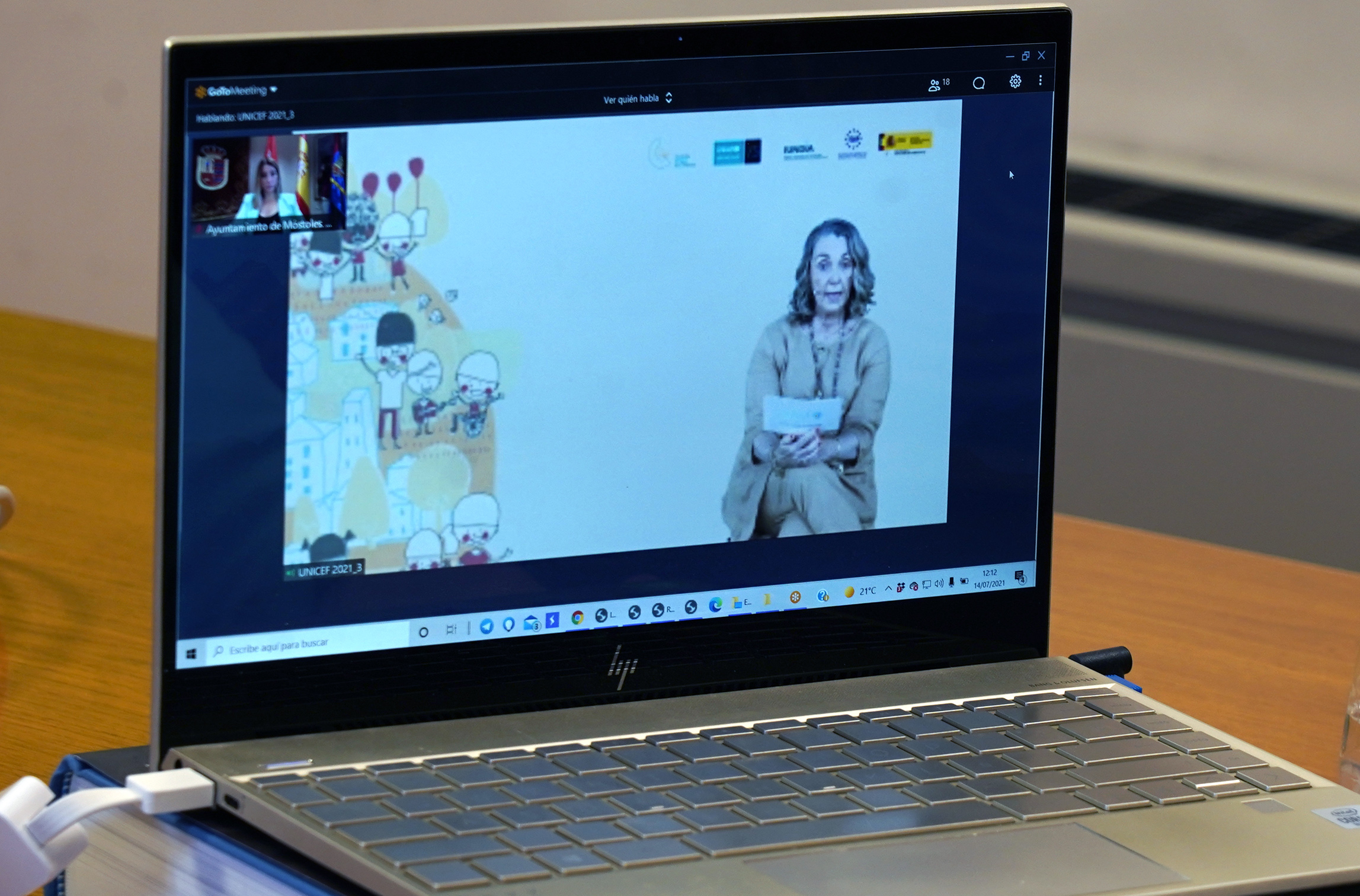 Reunión zoom Ciudad Amiga InfanciapImagen en alta resolución. Este enlace se abrirá mediante lightbox, puede haber un cambio de contextoReunión zoom Ciudad Amiga InfanciapEn un acto simbólico, celebrado en formato virtual debido a la pandemia, UNICEF España ha hecho entrega a Móstoles, del título de Ciudad Amiga de la Infancia que recibe este año el municipio por primera vez. El acto celebrado esta mañana ha contado con la participación de la Concejala de Educación y Juventud, Nati Gómez, en representación del Ayuntamiento de Móstoles.