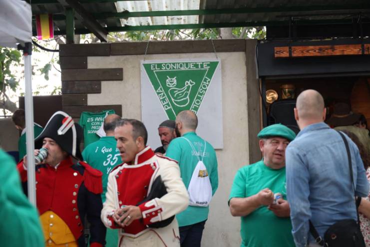 Vecinos y vecinas vestidos de época disfrutan del tradicional aperitivo goyesco de la Peña El Soniquete