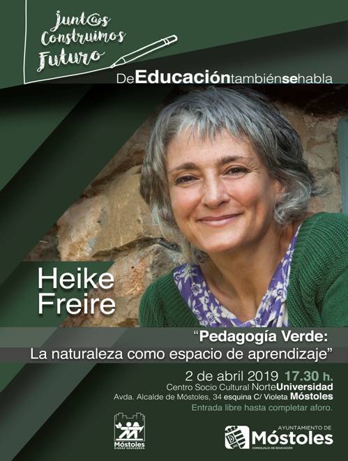 Heike Freire, será la encargada de finalizar el ciclo de las Jornadas de este curso con la charla "Pedagogía verde: la naturaleza como espacio de aprendizaje". Durante la misma, se tratará sobre la importancia de cultivar y retomar el vínculo con la naturaleza en la infancia.