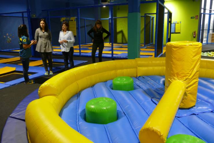 Imagen en alta resolución. Este enlace se abrirá mediante lightbox, puede haber un cambio de contextoDentro del programa de visitas que lleva a cabo periódicamente la Alcaldesa Noelia Posse para conocer de primera mano y mostrar su apoyo a los comercios y establecimientos locales, ayer realizó una visita al Centro de ocio infantil y juvenil `Flipa Jump´, acompañada por la Concejala de Presidencia, Rebeca Prieto. Este parque, ubicado en el CC La Fuensanta, se abrió hace tres meses con siete trabajadores, seis de los cuales son vecinos de este municipio, y cuya contratación se realizó a través de Móstoles Desarrollo.
