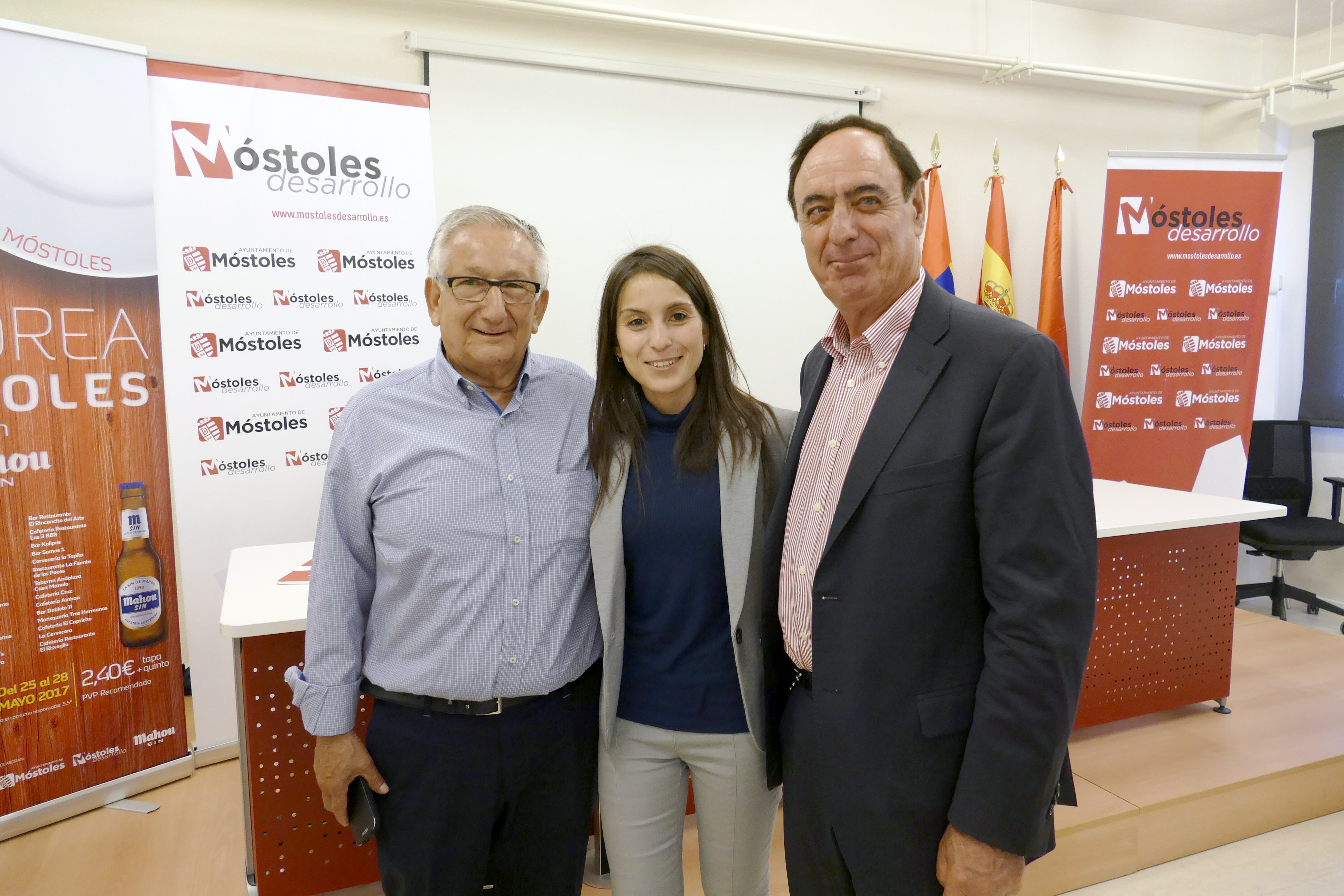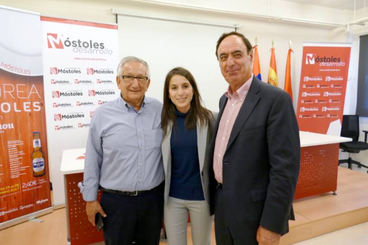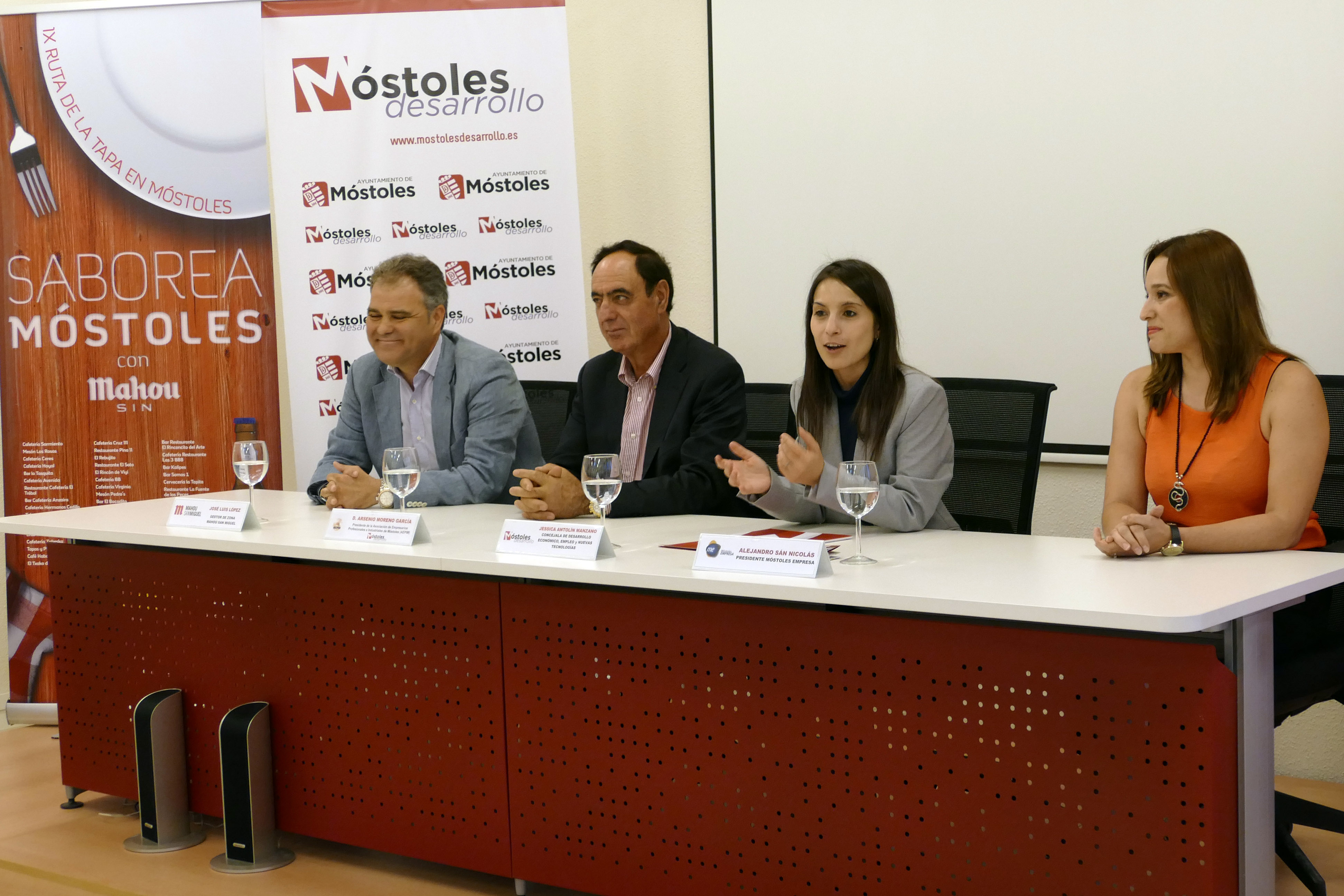 Imagen en alta resolución. Este enlace se abrirá mediante lightbox, puede haber un cambio de contextoLa concejala de Desarrollo Económico, Empleo y Nuevas Tecnologías, Jessica Antolín, junto al presidente y el secretario de AEPIM, Arsenio Moreno y Luis del Castillo, el presidente de Móstoles Empresa, Alejandro San Nicolás, representantes de Mahou San Miguel, y a algunos hosteleros participantes, presentó esta mañana la IX Ruta de la Tapa en Móstoles, bajo el nombre de "Saborea Móstoles".