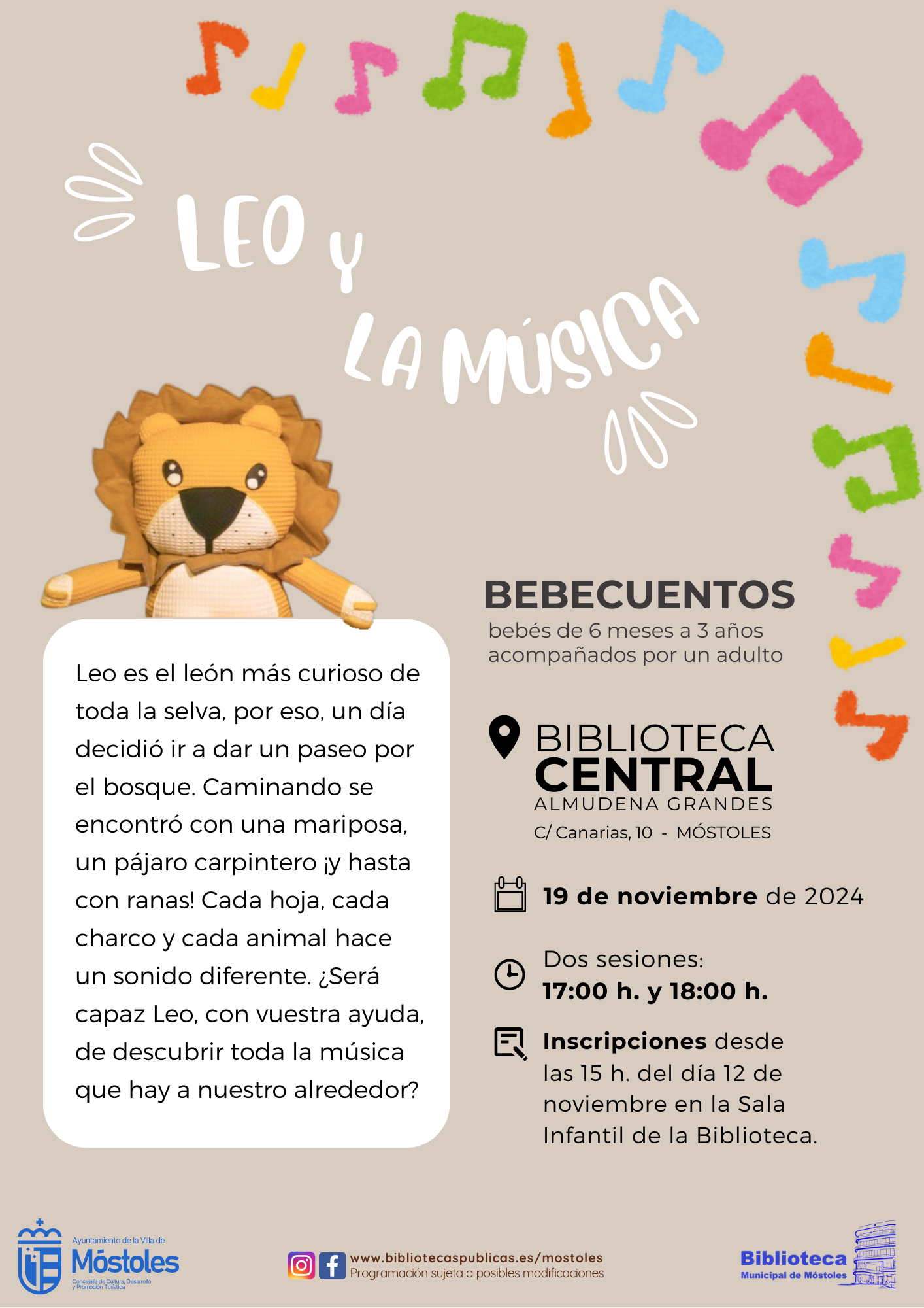El martes 19 arranca la agenda con un bebecuentos, "Leo y la música", dirigido a niños de 6 meses a 3 años acompañados de un adulto, a cargo de Trémola Teatro, en la Biblioteca Central. Se organizarán dos sesiones de 30 minutos, a las 17:00 h y a las 18:00 h, a las que se podrá asistir con entrada gratuita, previa retirada de invitaciones en el propio centro.