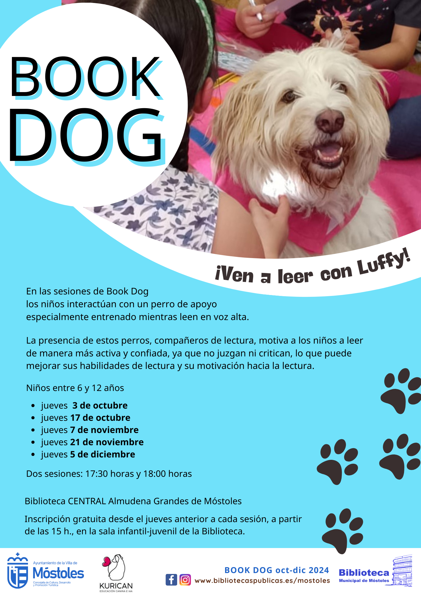 El jueves 21, en la Biblioteca Central se celebrará un "Book dog", en dos sesiones, a las 17:30 h y a las 18:00 h. Este taller de lectura en voz alta permite a los niños, de 6 a 12 años, interactuar con un perro de apoyo especialmente entrenado mientras leen en voz alta. La inscripción es gratuita y se puede formalizar en la Biblioteca Infantil-Juvenil, de lunes a viernes en horario de 15:00 h a 20:15 h.