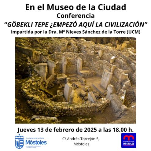 Por otro lado, el jueves 13 en el Museo de la Ciudad tendrá lugar la conferencia "Göbekli Tepe ¿empezó aquí la civilización?", impartida por la doctora Mª Nieves Sánchez de la Torre (UCM), a las 18:00 h. Las invitaciones podrán retirarse desde el martes 11 de febrero en el horario del museo.