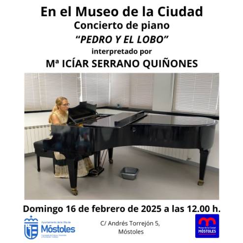 Y para cerrar la semana, el domingo 16, el Museo de la Ciudad acogerá un concierto de piano "Pedro y el Lobo", interpretado por Mª Icíar Serrano Quiñones, a las 12:00 h. La retirada de invitaciones podrá hacerse desde el martes 11, en el horario del museo.