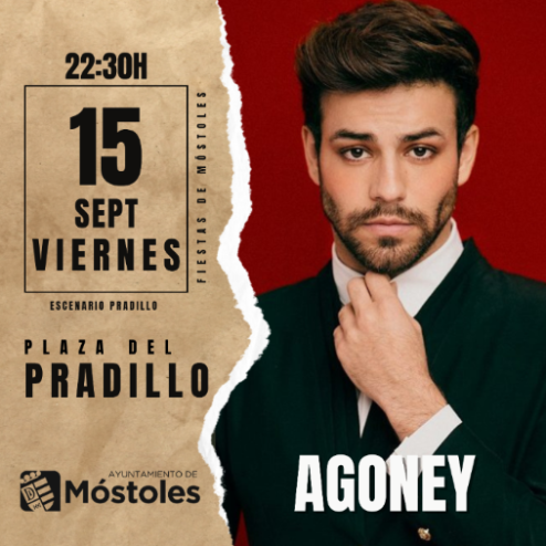 Agoney formará parte de las Fiestas Patronales de Móstoles 2023. Será el viernes 15 septiembre a partir de las 22:30 horas en la Plaza del Pradillo cuando el artista canario ofrecerá un concierto gratuito.