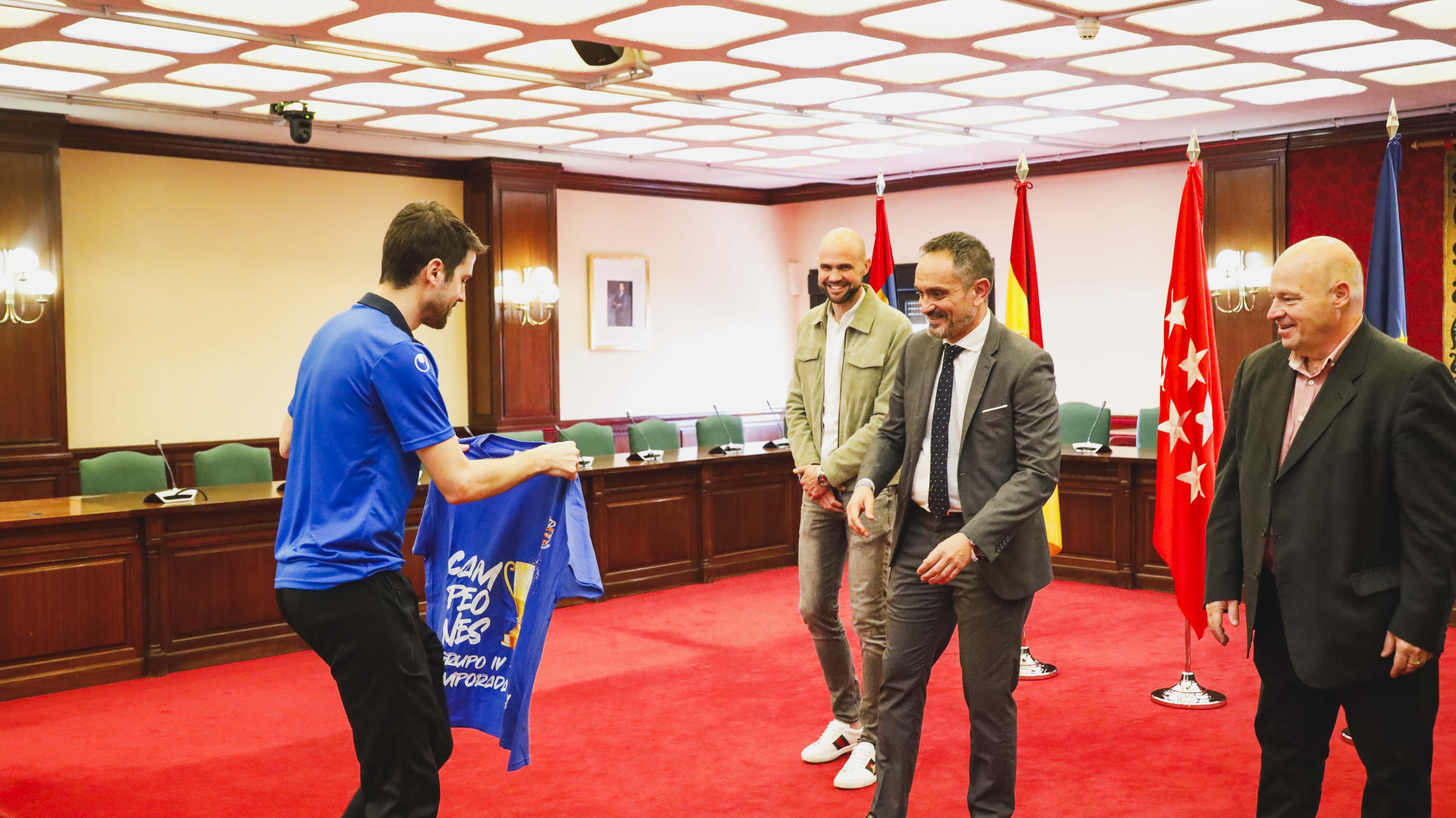 El Primer edil ha recibido a los jugadores para darles la enhorabuena por la victoria conseguida, y les ha felicitado personalmente destacando "la tan merecida victoria conseguida gracias al esfuerzo y espíritu de superación que proclama, como principales valores, el equipo mostoleño, que son seña de identidad, también, de Móstoles, nuestra ciudad". Asimismo, el alcalde les ha hecho entrega de una medalla, en reconocimiento a este logro deportivo. Por su parte, el equipo entregó al Primer edil una camiseta de recuerdo como "Campeones, temporada 23-24".