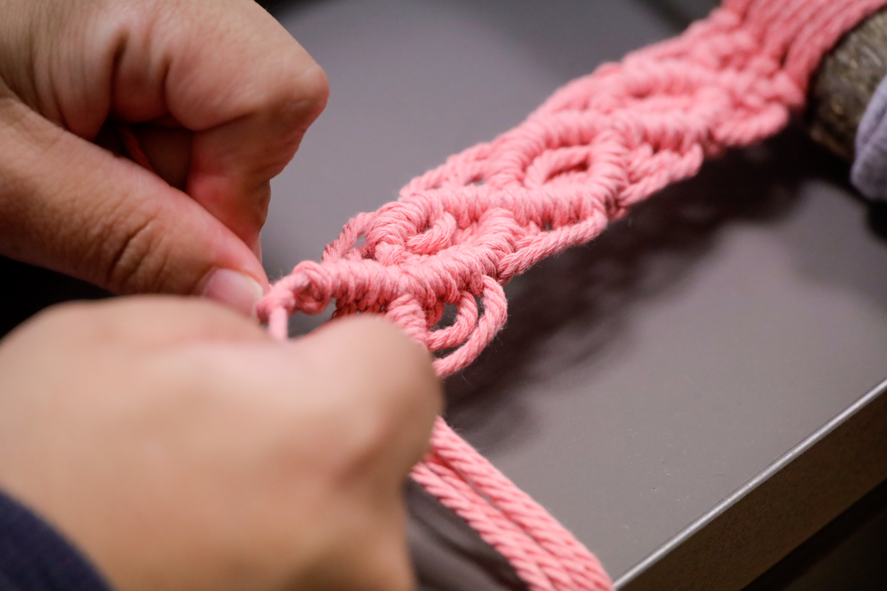 Se trata de uno de los talleres de habilitación ocupacional y de ajuste personal y social de AFANDEM que buscan el desarrollo de las personas discapacitadas. En el mismo, los participantes llevan a cabo manualidades de macramé, una actividad que les refuerza sus habilidades y les proporciona una herramienta que les ayude a mejorar su autonomía personal.