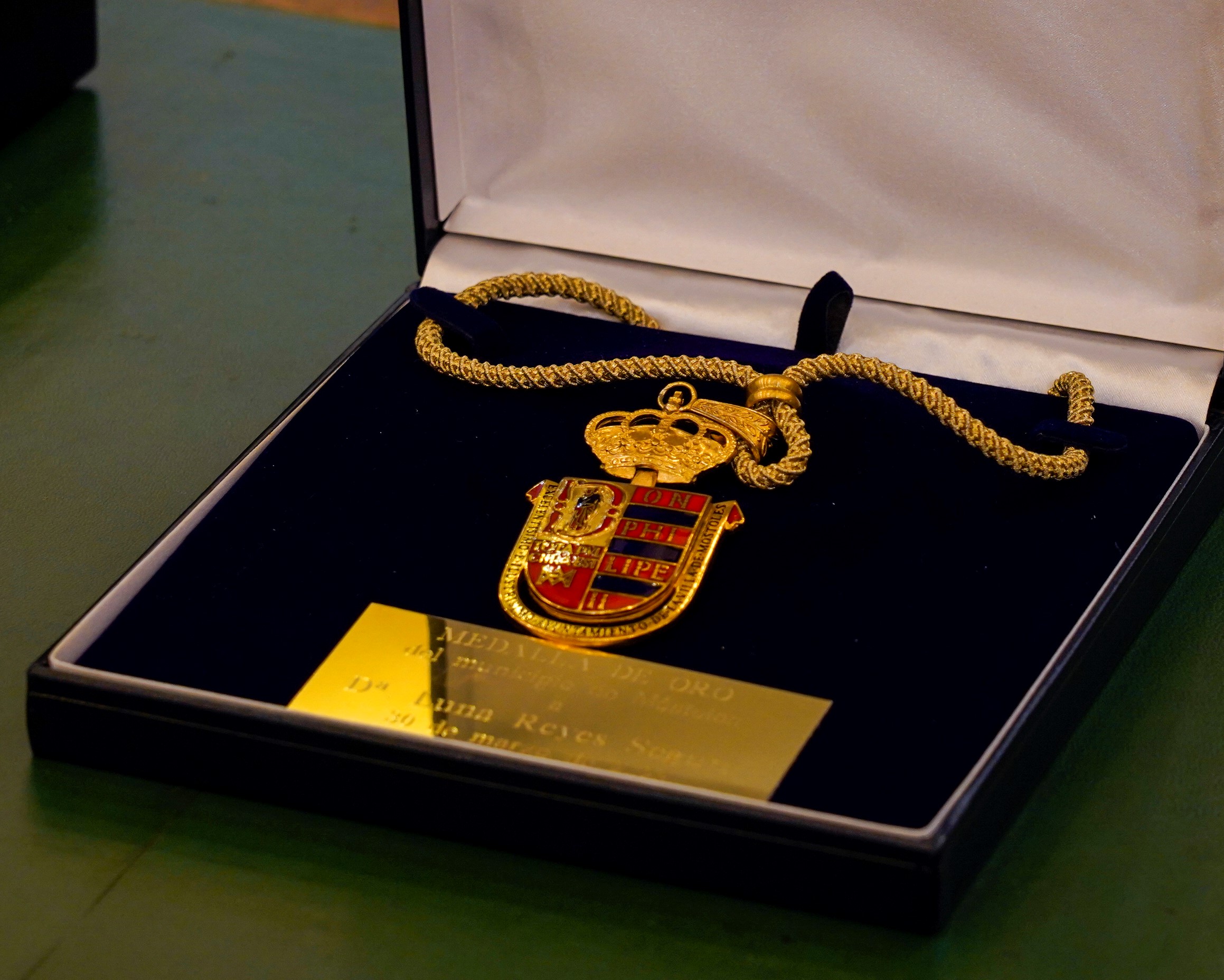 La Corporación Municipal cumple con la entrega de esta Medalla de Oro, acordado en el Pleno de 28 de abril de 2022, que se pospuso por motivos personales de la galardonada.