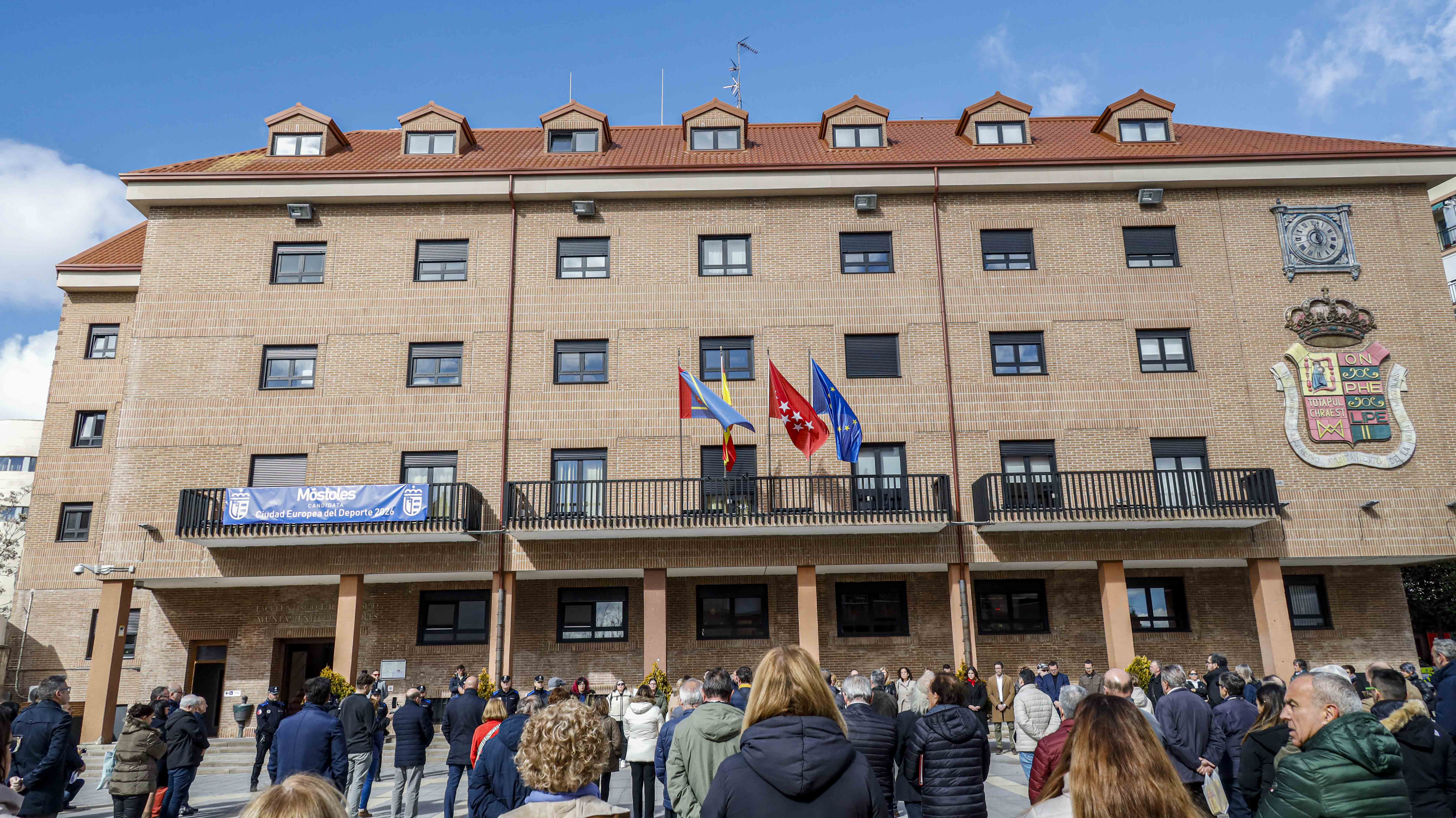 El Ayuntamiento de Móstoles ha guardado un minuto de silencio en solidaridad con las víctimas y afectados del incendio de dos edificios en Valencia