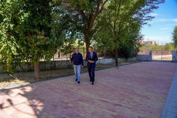 El alcalde de Móstoles, Manuel Bautista, y el concejal de Urbanismo, Vivienda, Patrimonio y Mantenimiento de la Ciudad, Sergio Soler, se han desplazado hasta allí para comprobar estas obras de mejora en la zona, que han supuesto la supresión de una zona de tierra y permite el tránsito rodado por la parte trasera del colegio.