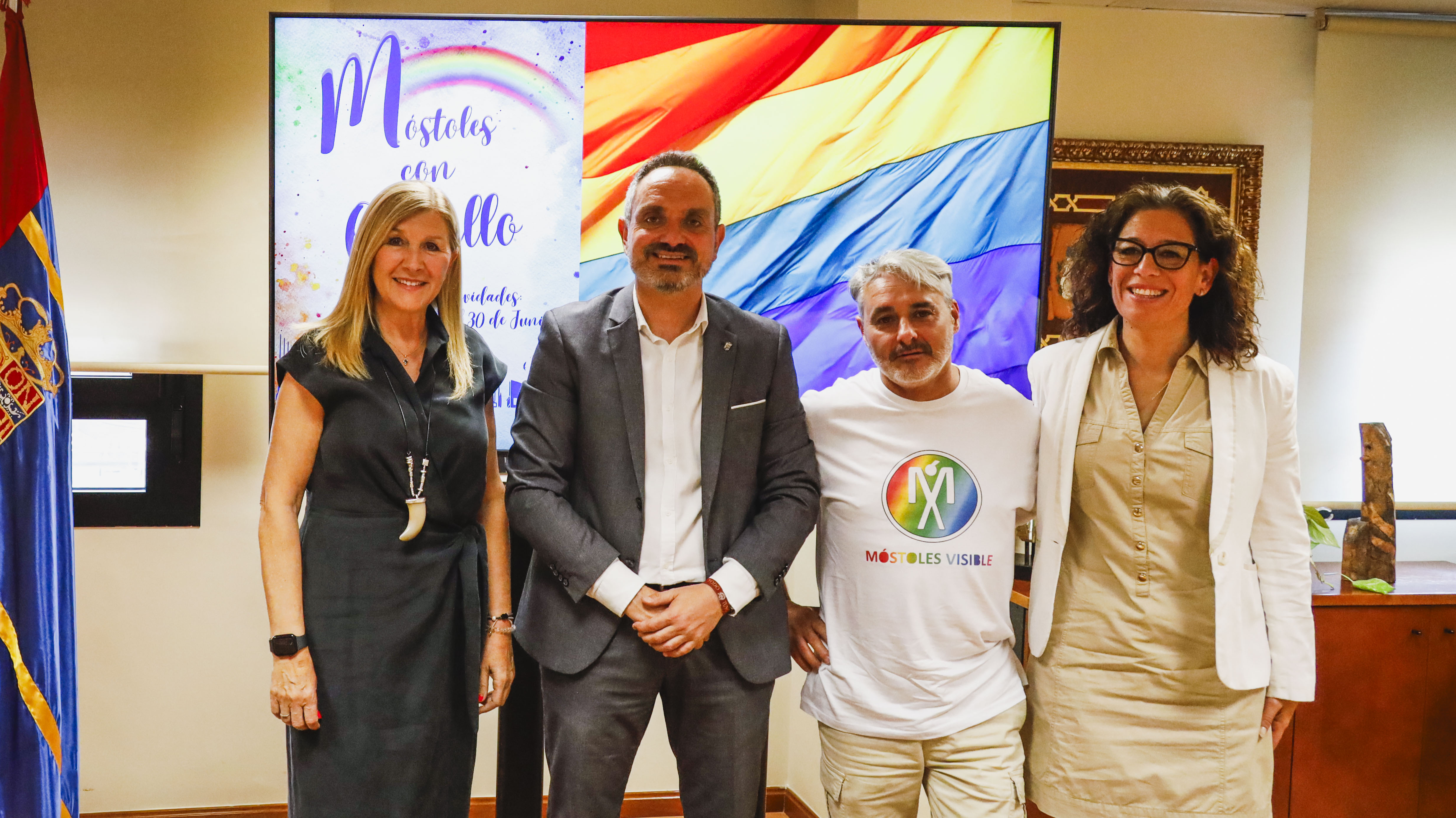 El Alcalde de Móstoles, Manuel Bautista; la concejal de Familia, Mayores, Sanidad, Igualdad y Bienestar Social, Raquel Manjavacas; y la concejal de Educación y Festejos, Cristina Molina, junto a José Manuel Espadas, presidente de la Asociación Móstoles Visible, han presentado esta mañana las actividades que se llevarán a cabo en el municipio durante esos días del mes de junio.