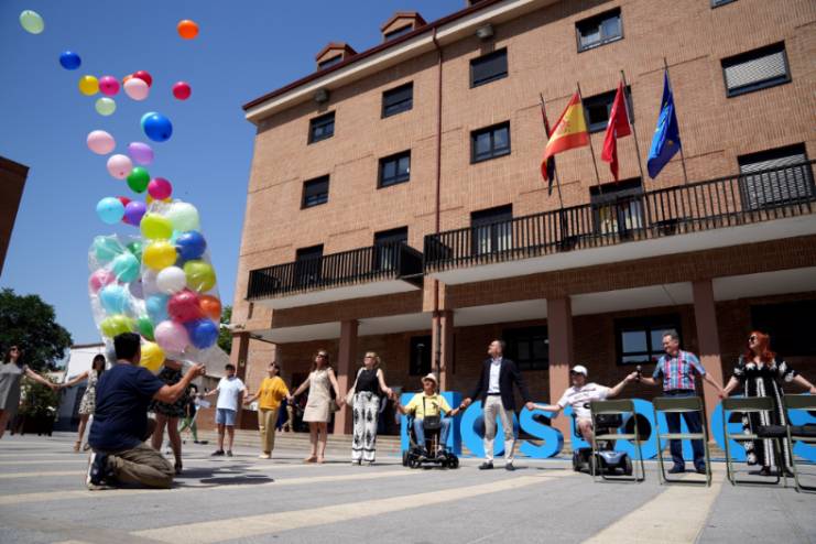 • El Ayuntamiento de Móstoles se suma a los actos promovidos por AMDEM, con motivo del Día Mundial de la Esclerosis Múltiple, como la suelta de globos biodegradables y la lectura del manifiesto, que han tenido lugar frente a la Casa Consistorial.