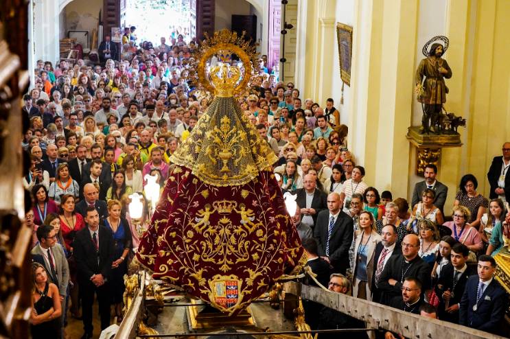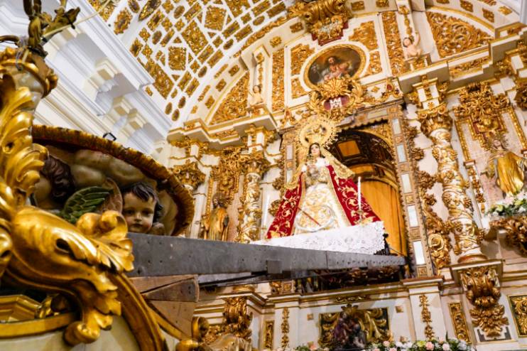 - Los actos litúrgicos tuvieron un papel relevante con la celebración de la misa solemne y la bajada de la Virgen desde su camarín a la carroza. La procesión de la Virgen de los Santos puso el broche a los eventos religiosos de la jornada.