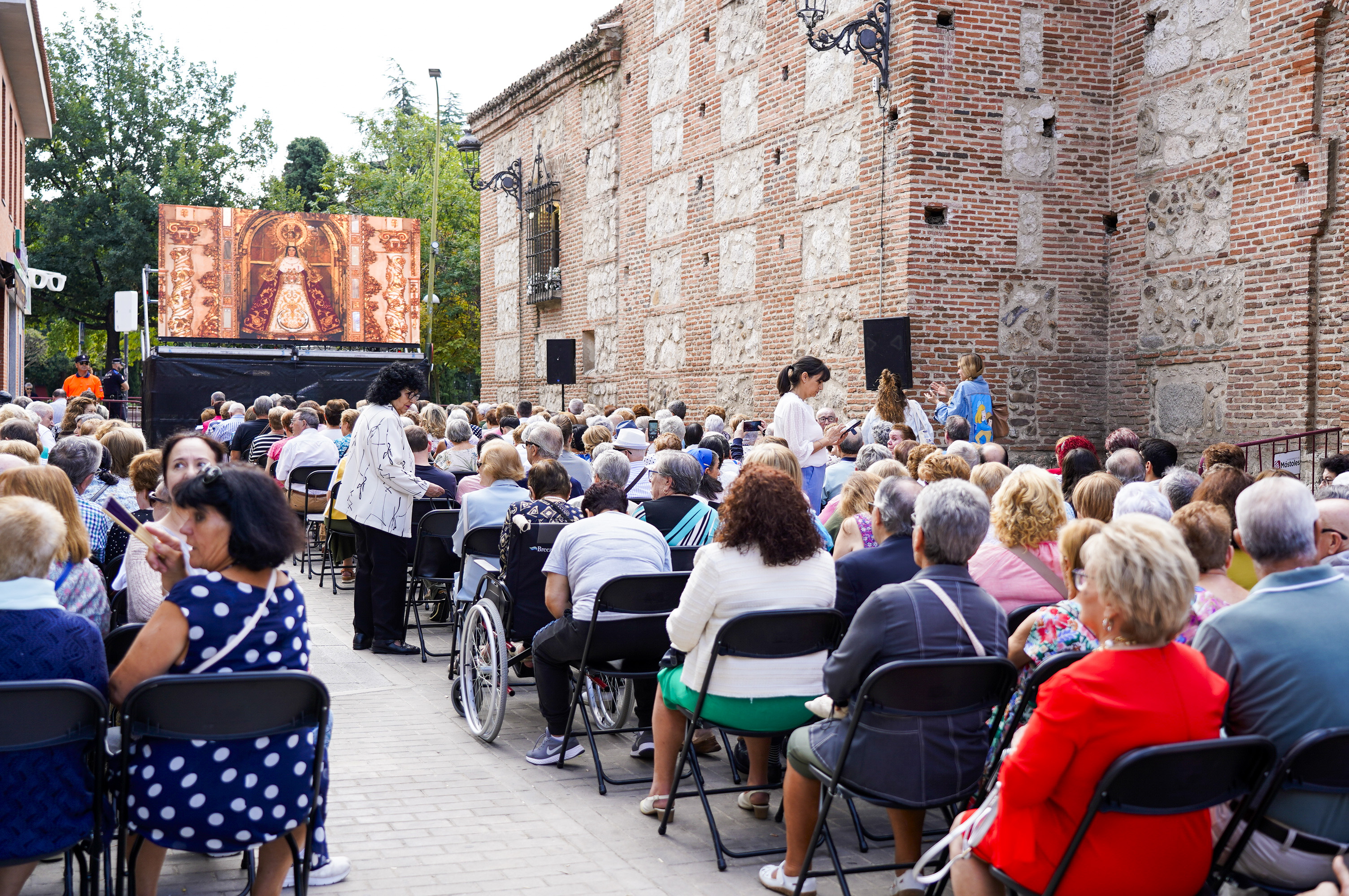 Continúan las actividades en torno a las Fiestas Patronales. El segundo día de las fiestas comenzó con la misa solemne en la Ermita donde el Alcalde de Móstoles, Manuel Bautista, entregó el bastón de mando a la Virgen de Nuestra Señora de los Santos. Miembros de la Corporación municipal, hermandades, peñas y cientos de fieles asistieron a la Eucaristía, que pudo seguirse desde la pantalla gigante que el Ayuntamiento instaló para los que no pudieron acceder al interior del recinto.