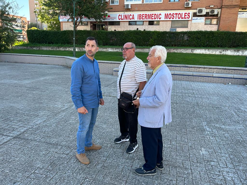 Durante la visita por las calles del barrio, la Asociación Pinar de Móstoles, correspondiente al Distrito 3, ha solicitado, entre otros, el apoyo municipal para el mantenimiento de su sede, la conservación del jardín del CEIP Juan Pérez Villaamil o la mejora en la visibilidad del badén en la zona del polígono.