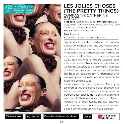 Dentro del Festival de Otoño de la Comunidad de Madrid, la creadora canadiense Catherine Gaudet llega el miércoles 22, a las 20:00 h, al Teatro del Bosque con "Les jolies choses".