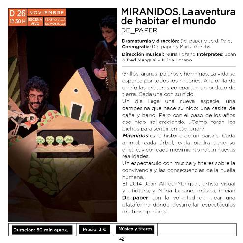 Los títeres llegan al Teatro Villa de Móstoles con la obra "Miranidos. La aventura de habitar el mundo". Será el domingo 26 a las 12:30 h.