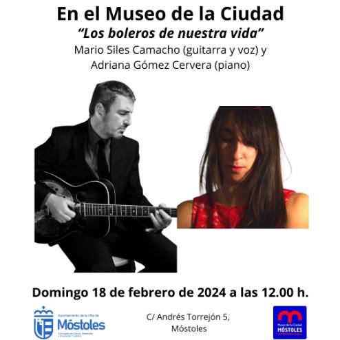 El Museo de la Ciudad acoge el domingo 18 a las 12:00 h la actuación de Mario Siles Camacho (guitarra y voz) y Adriana Gómez Cervera (piano), que vienen a presentar su espectáculo "Los boleros de nuestra vida".