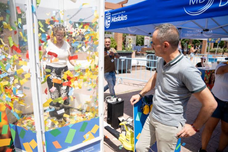 Los mostoleños han podido obtener tickets de descuento gracias a una original cabina de viento, donde han podido "atrapar" premios por valor de 5, 10 o 15 euros a canjear en los establecimientos adheridos a la promoción.
