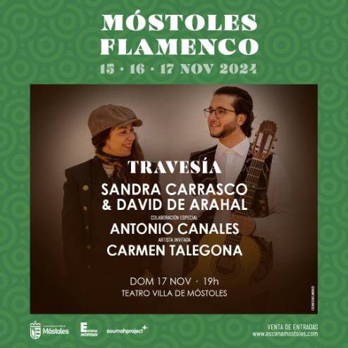 Por la tarde, a las 19:00 h, el Teatro Villa de Móstoles acogerá "Travesía", el nuevo espectáculo de Sandra Carrasco y David de Arahal. Los artistas hacen una interpretación maestra homenajeando a las coplas que han marcado sus vidas y contarán sobre las tablas con un elenco excepcional como son la maestría de Antonio Canales y de Carmen Talegona, que llevan al público a un viaje íntimo lleno de emociones, recuerdos y sentimientos.