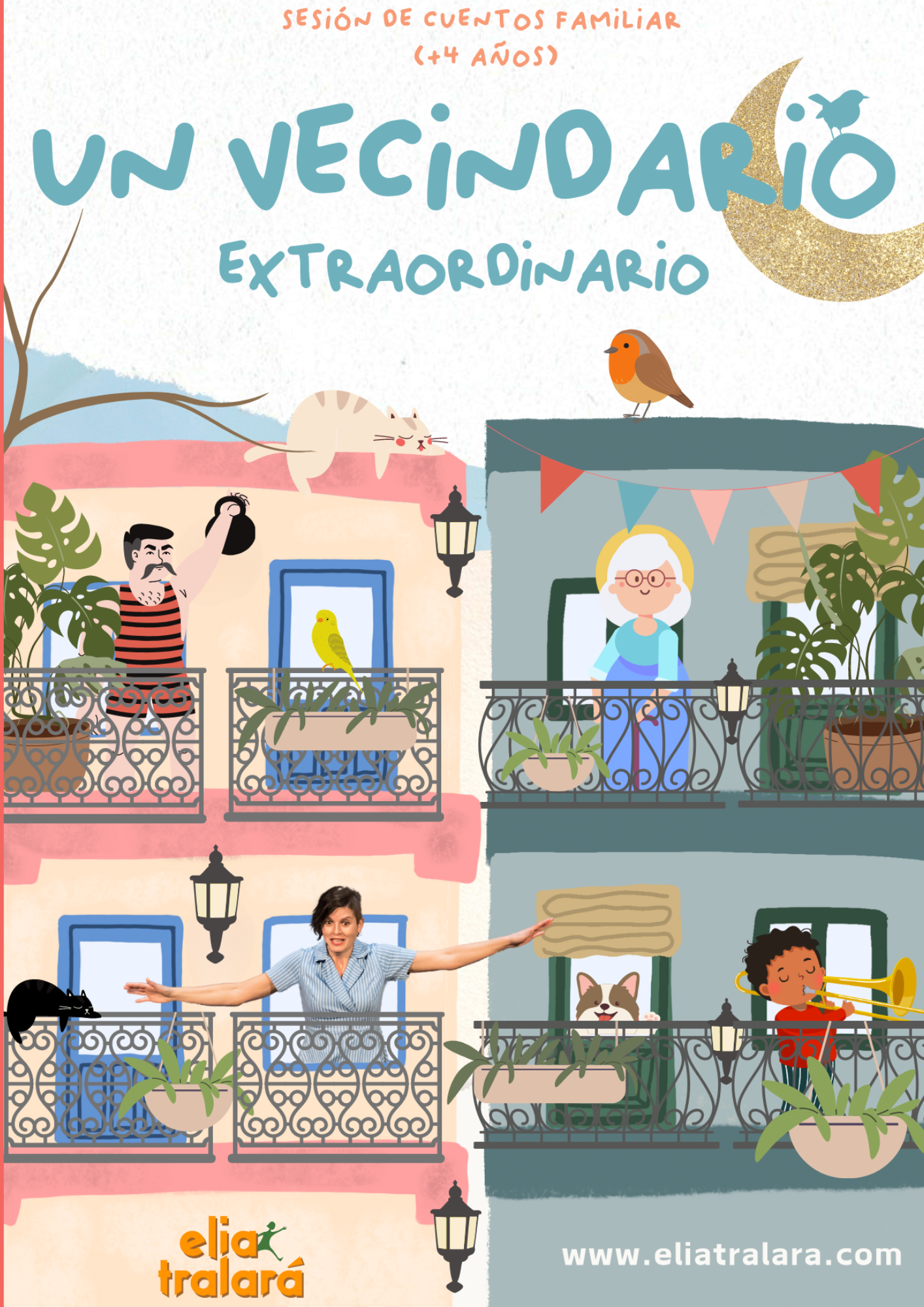 El martes 21 Elia Tralará estará con su cuentacuentos "Un vecindario extraordinario" en el Centro Sociocultural Norte-Universidad. Habrá dos sesiones: a las 17:30 h y a las 18:30 h.