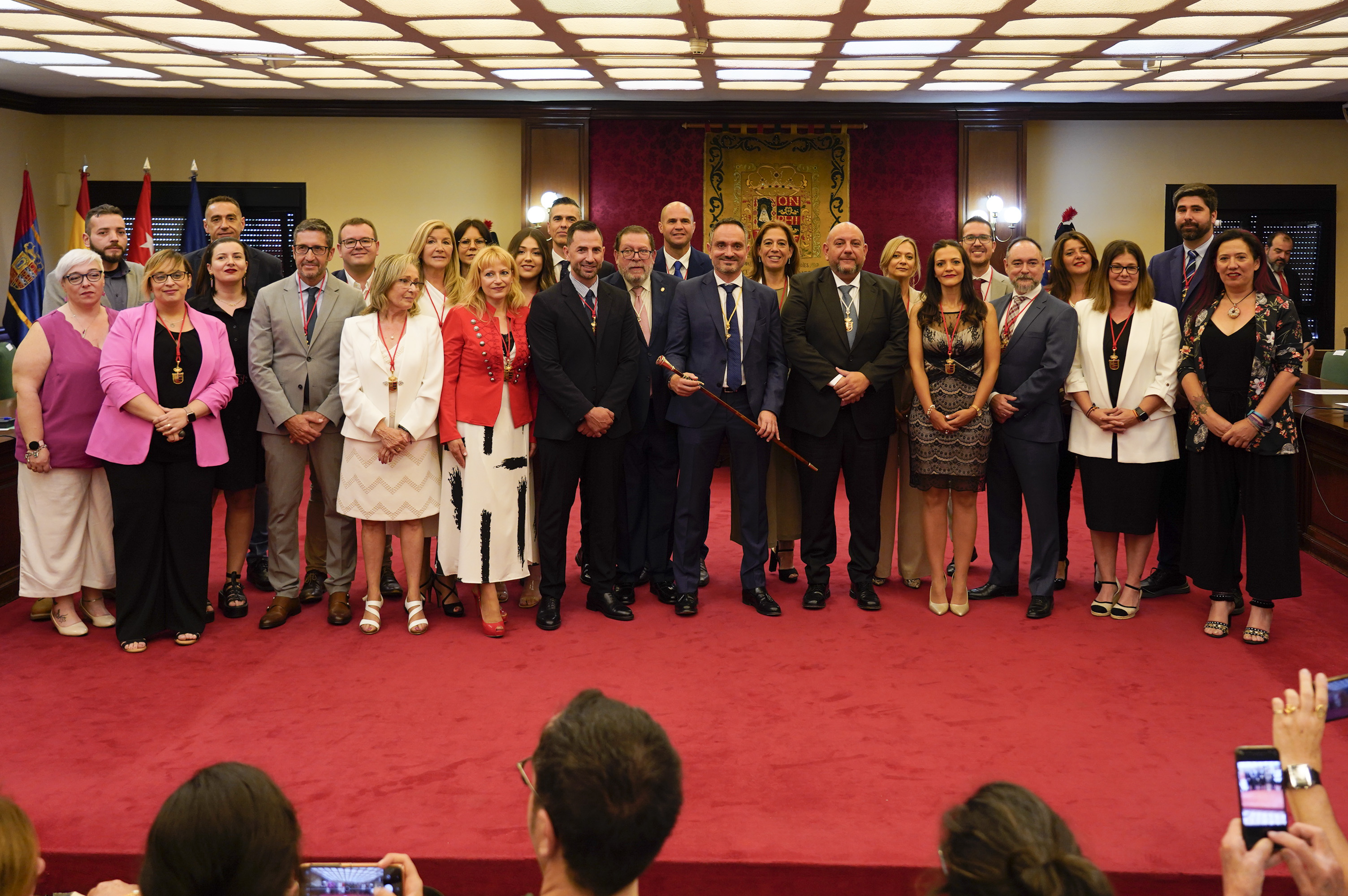La ceremonia de nombramiento tuvo lugar en el Salón de Plenos del Ayuntamiento con una amplísima participación vecinal y en la que los asistentes, con muchos familiares de los ediles entre los presentes, aplaudieron respetuosamente la entrega del bastón de mando al nuevo Alcalde Manuel Bautista y cerraron el acto con un solemne grito de unanimidad de "Viva Móstoles".